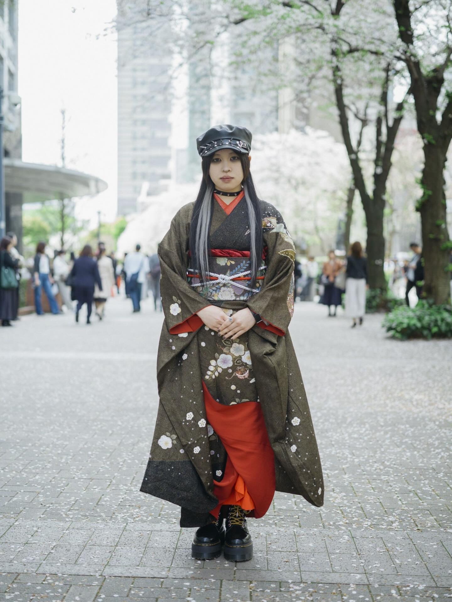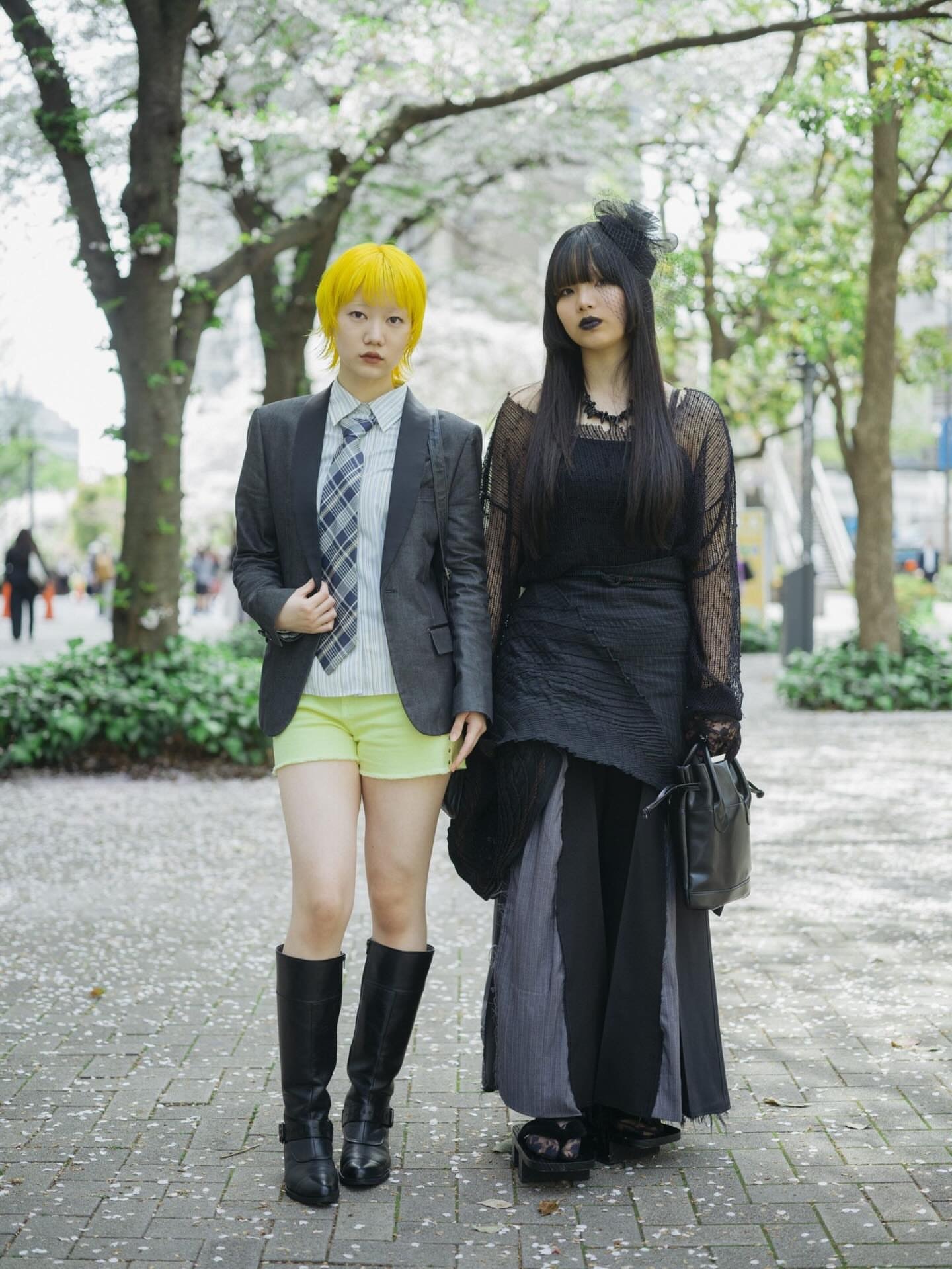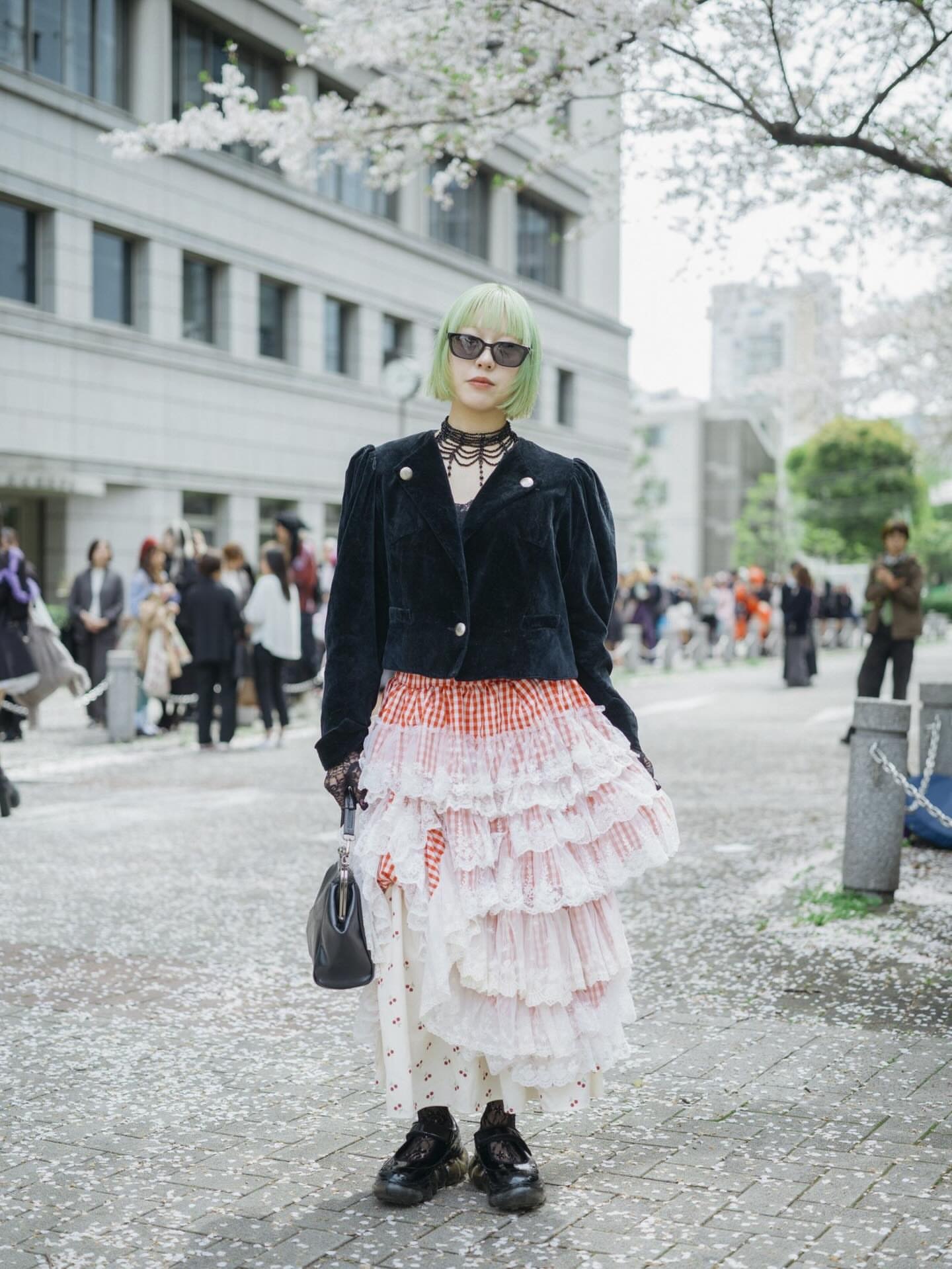 日本文化服装学院昨天举行入学仪式,学生们的穿着打扮都很前卫。