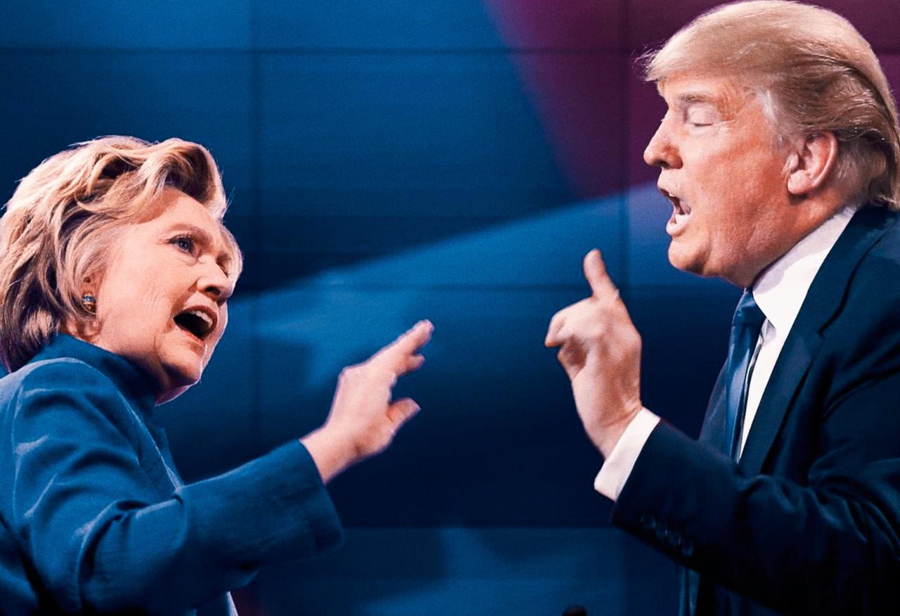 特朗普和希拉里这是在争吵吗? 从特朗普和希拉里两人的面部表情来看,像是情绪比较激动的样子啊! 特朗普和希拉里都张大嘴在朝对方吆喝吗?