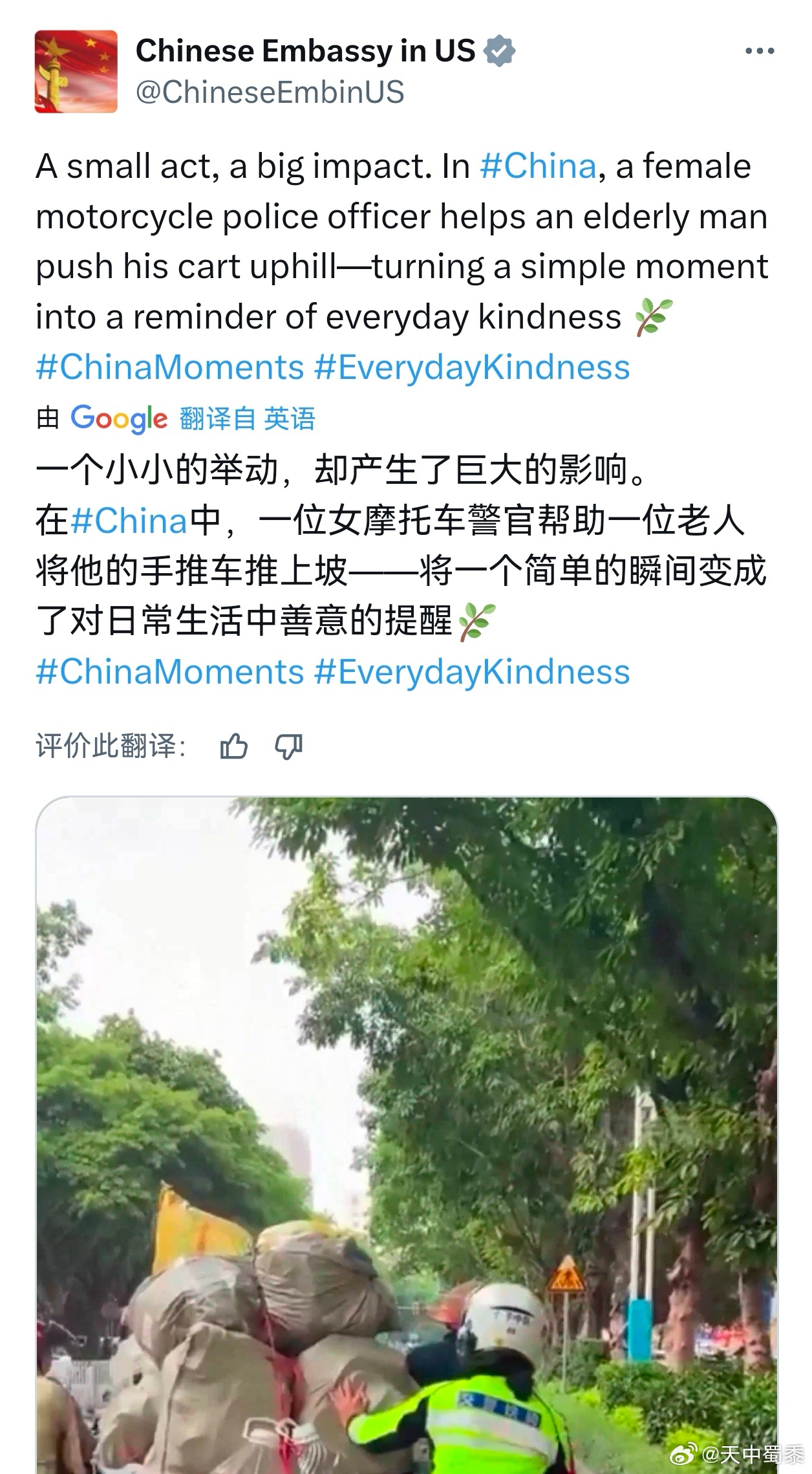 国家机器的重要组成部分成为了他的人民爱戴的、信任的、依赖的人,这才是体制之光。女警帮老人推车,这行为美国人是理解不了的,他们只会让美国黑人无法呼吸。