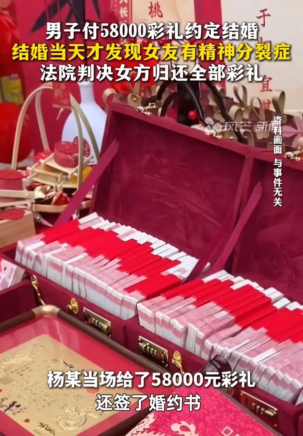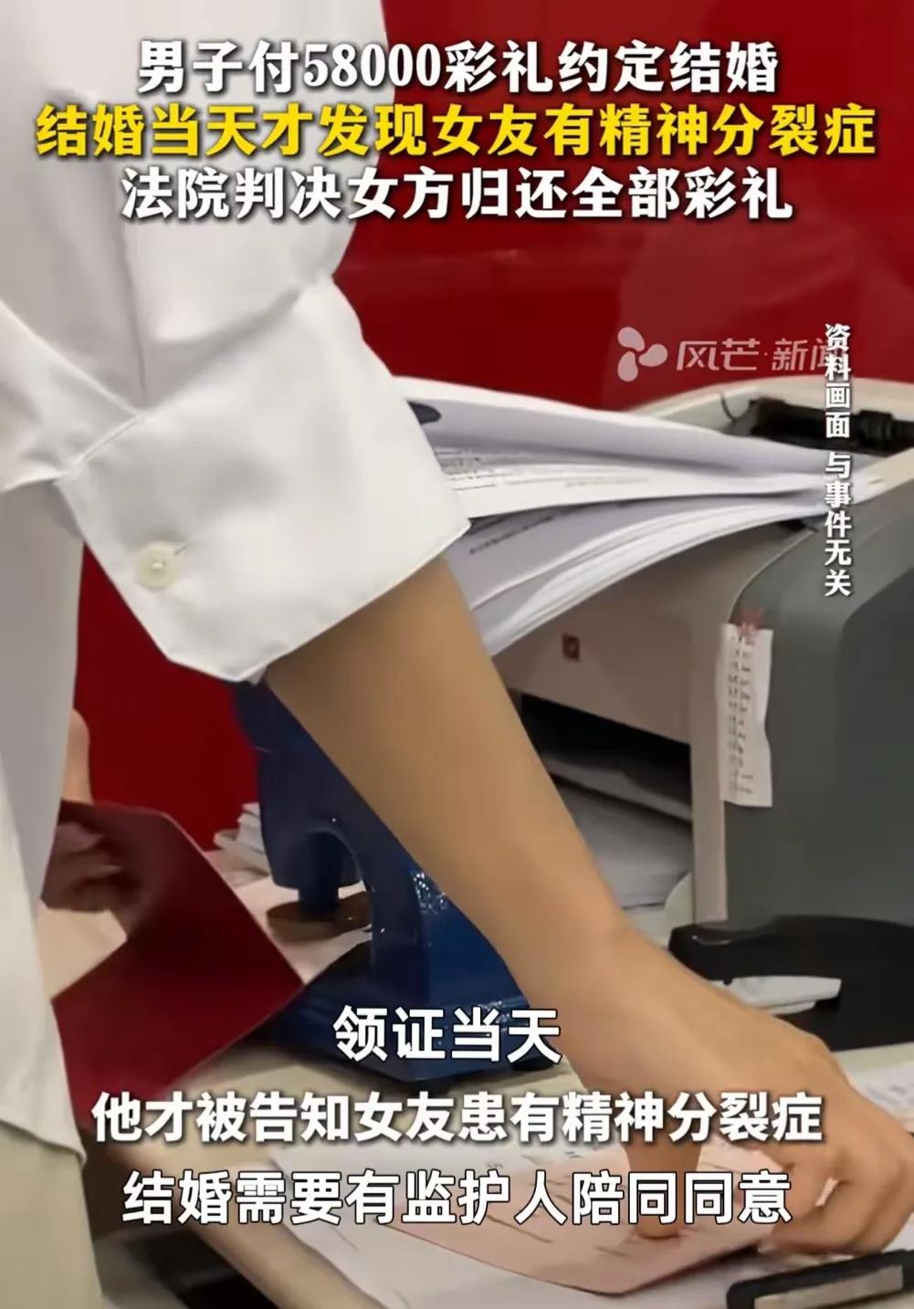 震碎三观!海南万宁,男子花58000元彩礼,跟女友签了婚约书,结果在领证的当天,被女友家人告知,女友有精神分裂,领证需要有监护人在场才可以,男子懵了,处对象的时候女友确实是话少,但是没看出来不一样,男子觉得自己被骗,要求女方退还全部彩礼,谁知道女方不愿意,说是他自愿给的,男子一气之下将女方告上法庭,法院最后这样判了! 男子杨某和女友恋爱谈婚论嫁,全程都没听女方提过一句病情,只觉得姑娘话少文静,没往别处想。他按当地习俗,当场给了58000元彩礼,还签了婚约书,就等着领证结婚,开启新生活。 谁知道到了领证当天,工作人员告知,女方患有精神分裂症,属于限制民事行为能力人,结婚必须有监护人陪同同意。杨某这才彻底傻了眼,原来自己从头到尾都被蒙在鼓里,女方全家都在刻意隐瞒病情。 他当场就要求女方退还全部彩礼,可女方家却理直气壮,说彩礼是杨某自愿给的,不愿意退。这话说出来,简直是把人当傻子耍,明明是刻意隐瞒重大病情,骗了彩礼,还倒打一耙。 杨某气不过,直接把女方告上了法庭。法院审理后认为,女方及其家属在缔结婚姻的过程中,刻意隐瞒了女方患有精神分裂症的重大事实,属于欺诈行为,严重违背了杨某的真实意愿,也违反了婚姻的诚信原则。 最终,法院判决女方全额退还杨某58000元彩礼,这个结果一出,网友们都直呼解气。 婚姻的基础是坦诚和信任,女方家为了把女儿嫁出去,刻意隐瞒重大疾病,本质上就是骗婚。不仅毁了男方的期待,更是对婚姻的不尊重。 很多人说,姑娘话少文静,不代表可以隐瞒病情。精神分裂症是需要长期治疗、可能影响婚姻生活和后代健康的重大疾病,这根本不是小事,是必须在婚前如实告知的核心信息。 也有人说,女方家也是可怜,想给女儿找个归宿。可可怜不能成为欺骗的理由,不能把自己的不幸,转嫁到无辜的男方身上。用欺骗换来的婚姻,从一开始就是错的,注定不会有好结果。 这件事也给所有准备结婚的人提了个醒,婚前一定要做好充分的了解,必要时可以做婚前体检,别等领证了才发现被蒙在鼓里,人财两空。 各位读者你们怎么看?欢迎在评论区讨论。