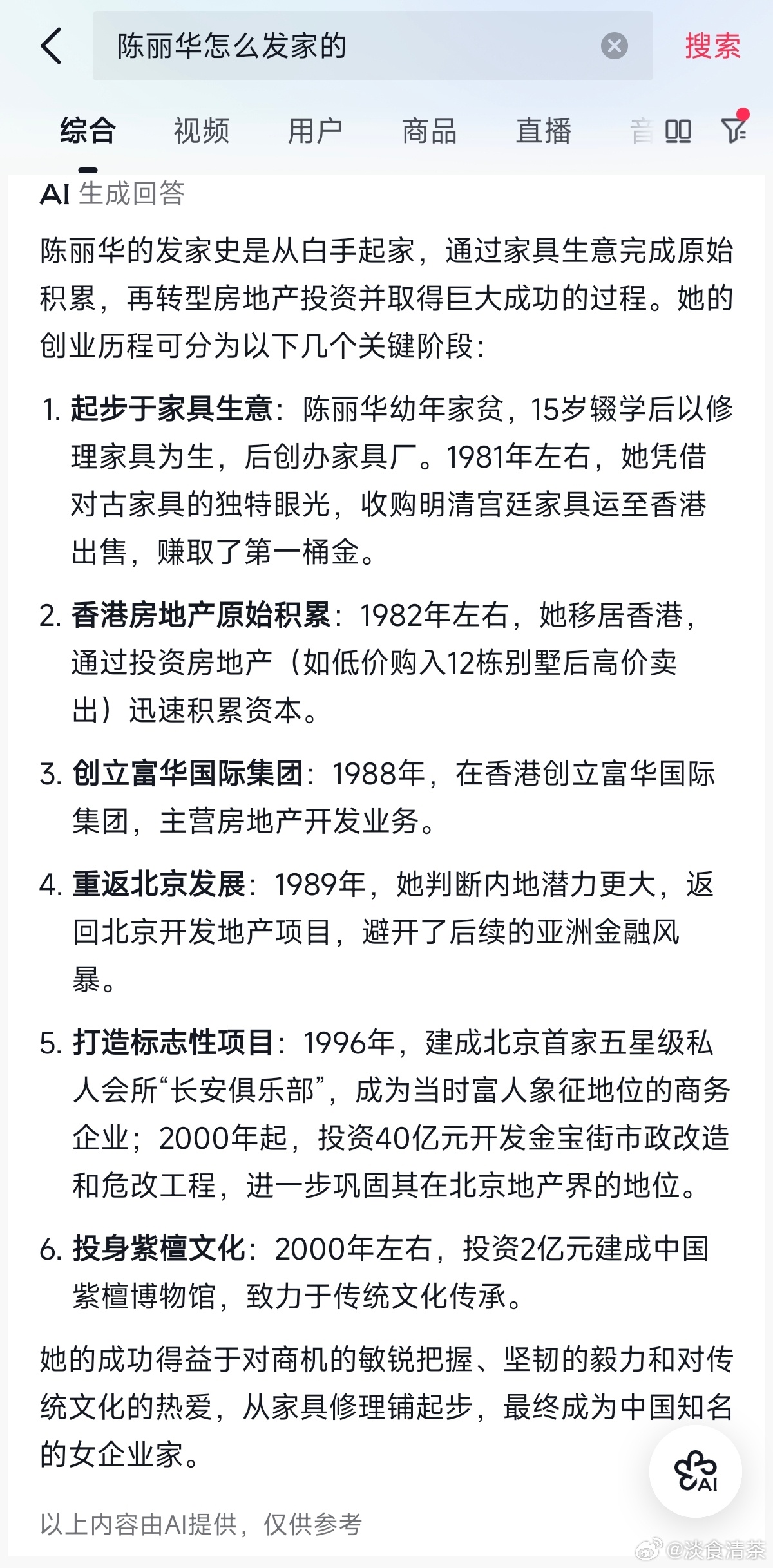 敏感时期很多人的家具售卖,人跑港台去,她就把这些卖的家具倒腾去香港卖。(有人脉,也懂这些家具的价值,看得到商机)