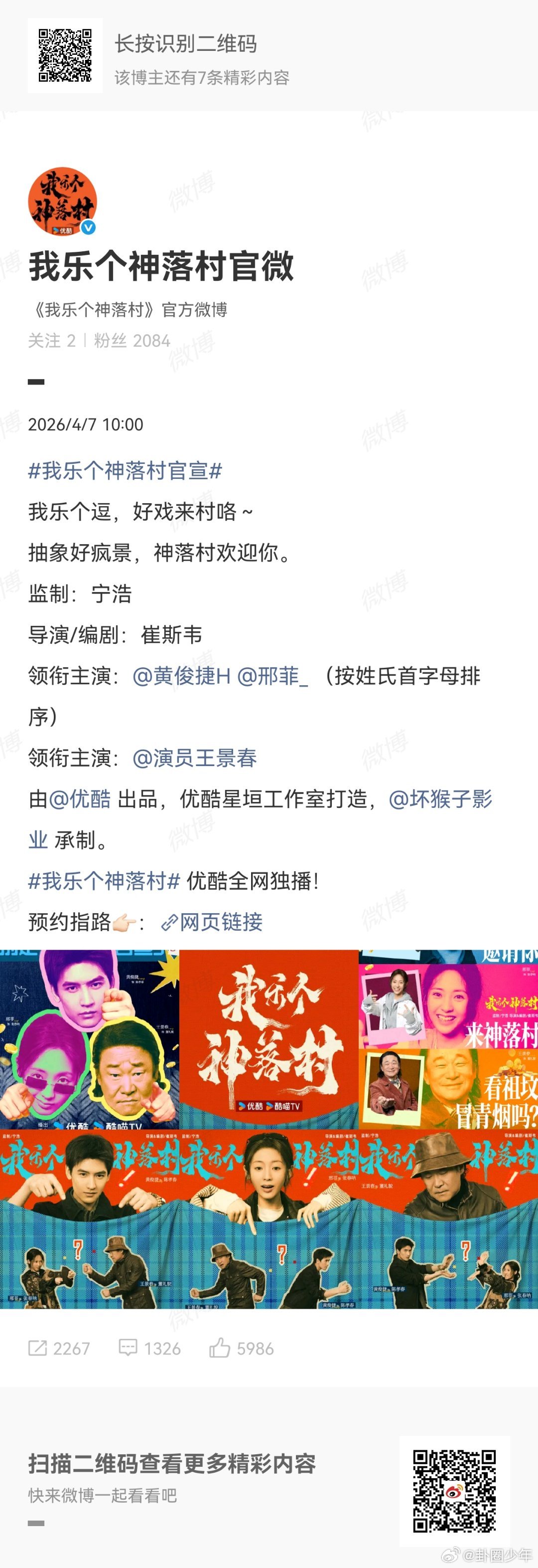 黄俊捷领衔主演宁浩新剧黄俊捷领衔主演我乐个神落村黄俊捷担纲领衔主演,实力搭档金牌