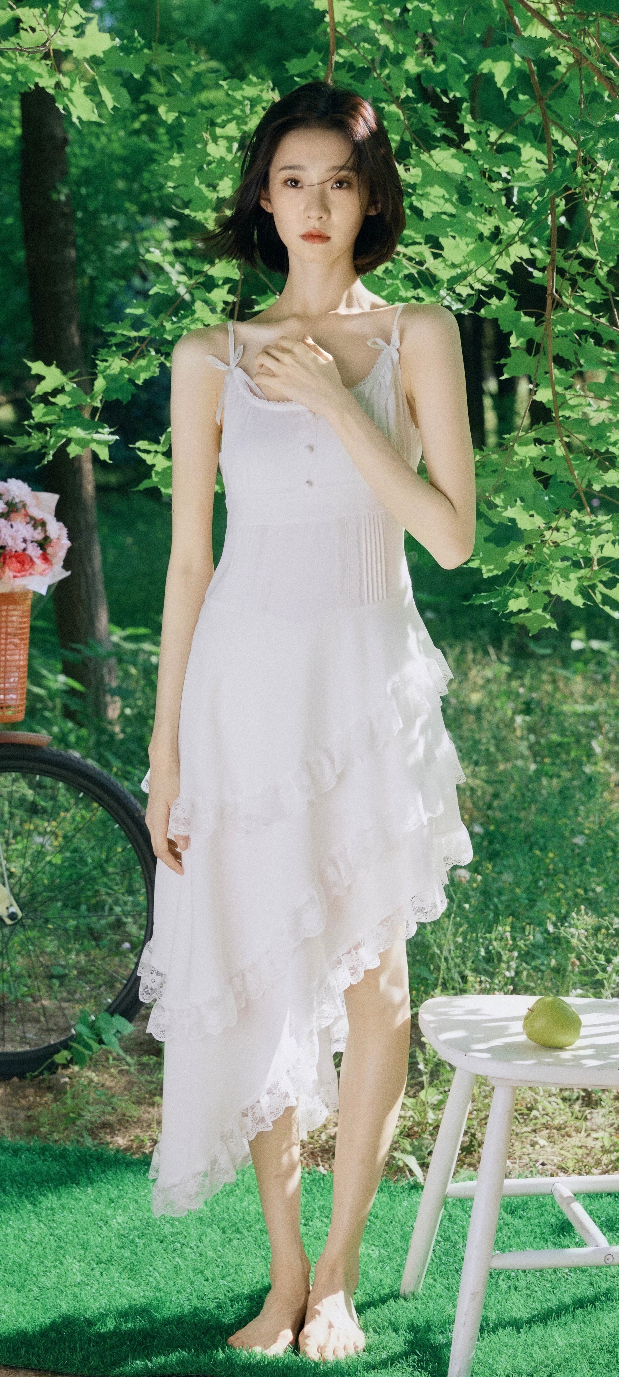 张艺凡夏日写真壁纸,白裙美腿少女感。张艺凡