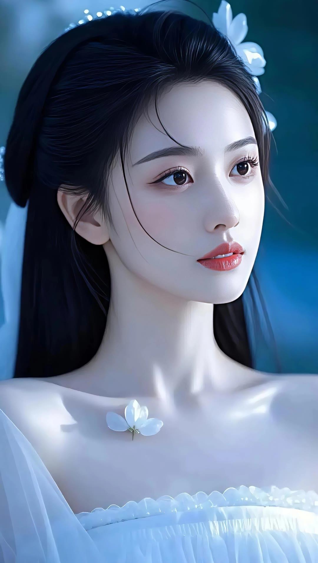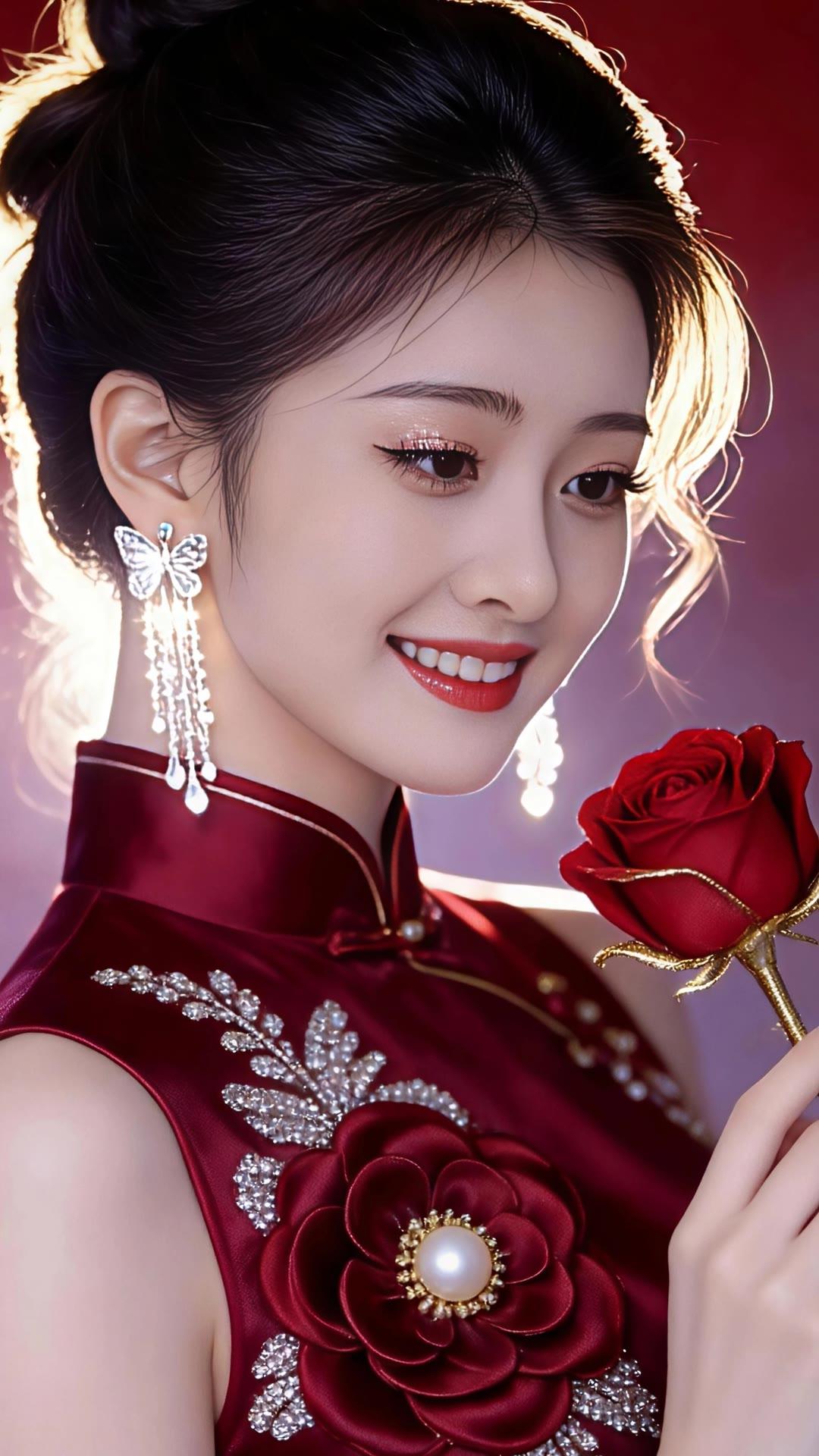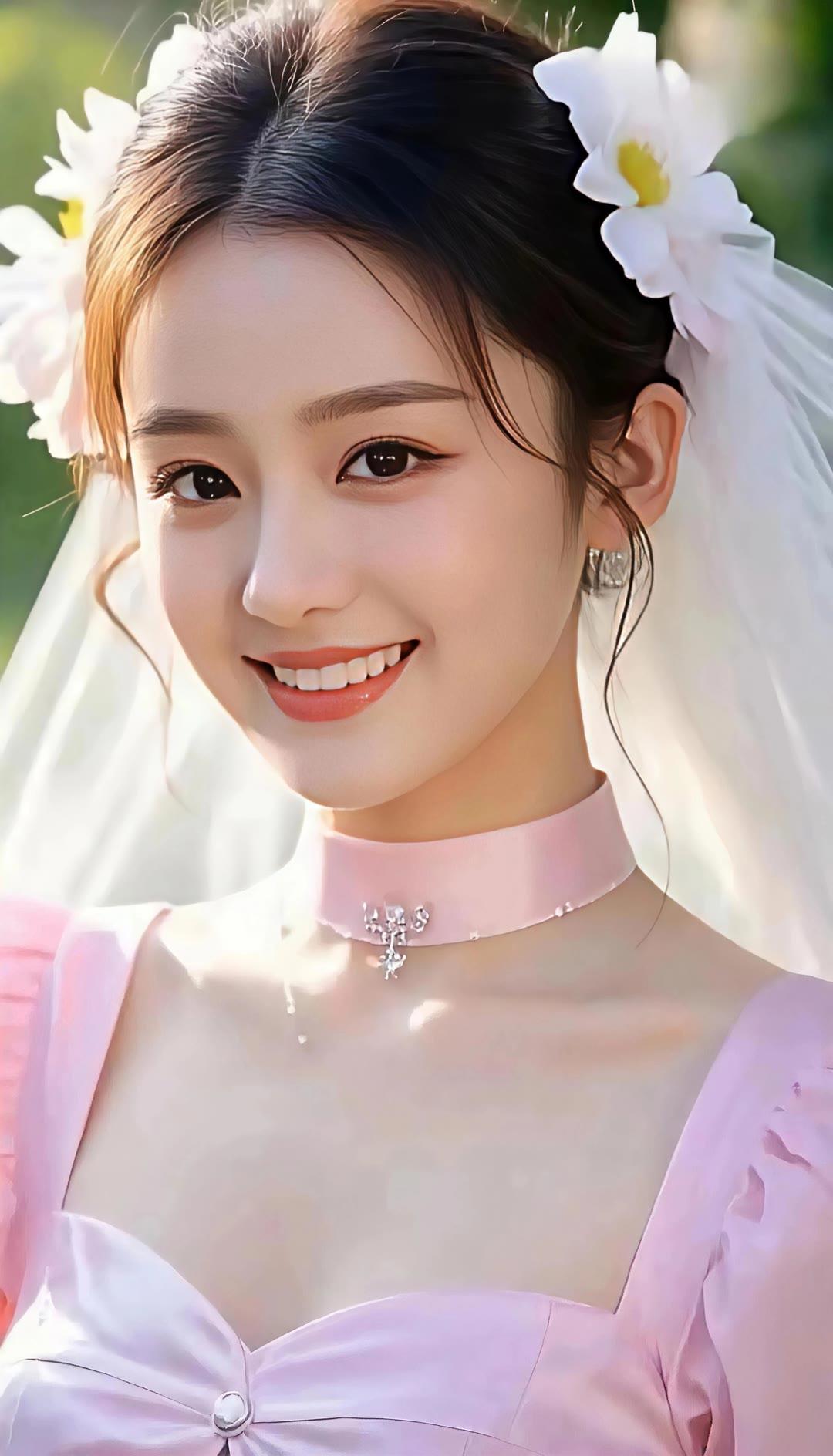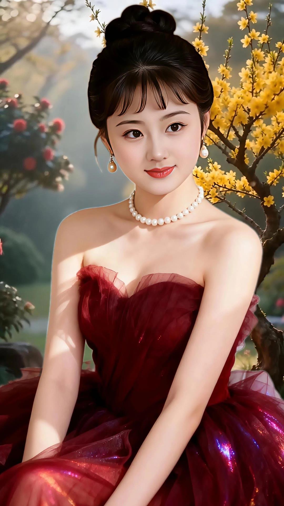 优雅少女,粉裙花海,珍珠闪耀,梦回古代