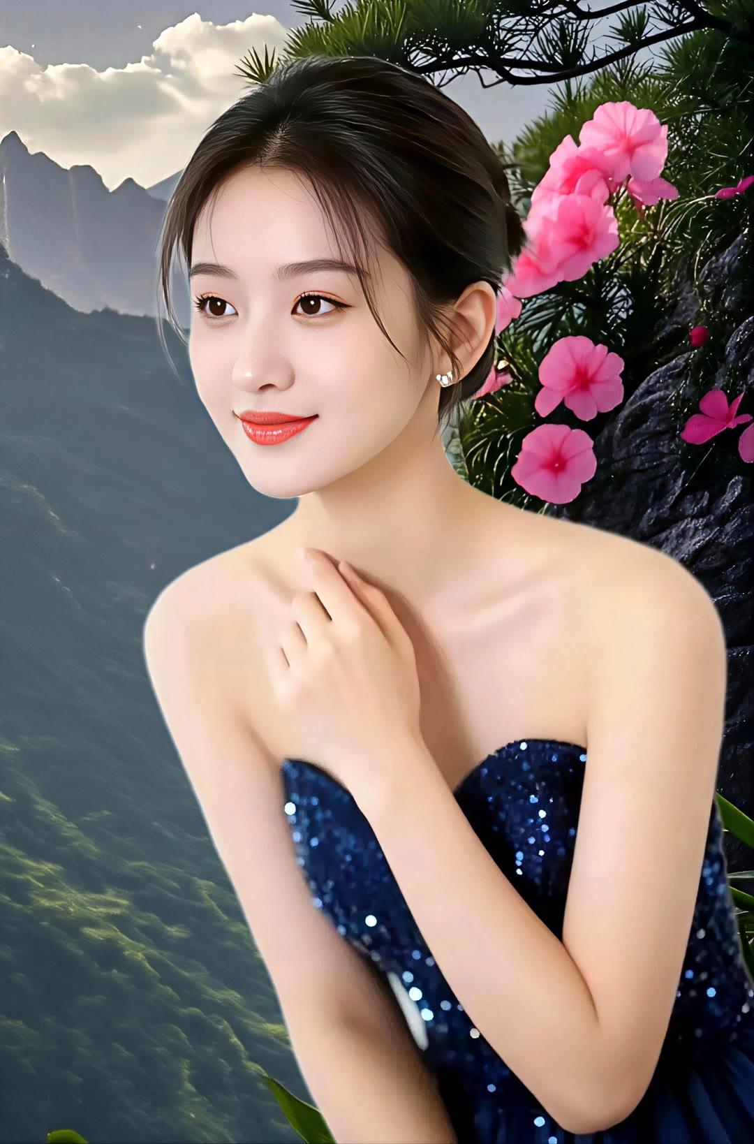 一袭长裙的御姐型美女,那气场简直绝了。就说穿搭,黑色丝绒包臀紧身长裙配黑色缎面吊