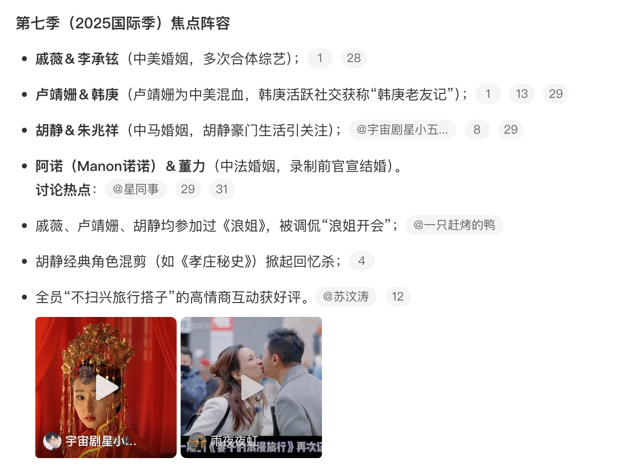 妻子的浪漫旅行历届阵容八季旅程,浪漫永存✨从初代夫妻的经典名场面,到国际季的跨国