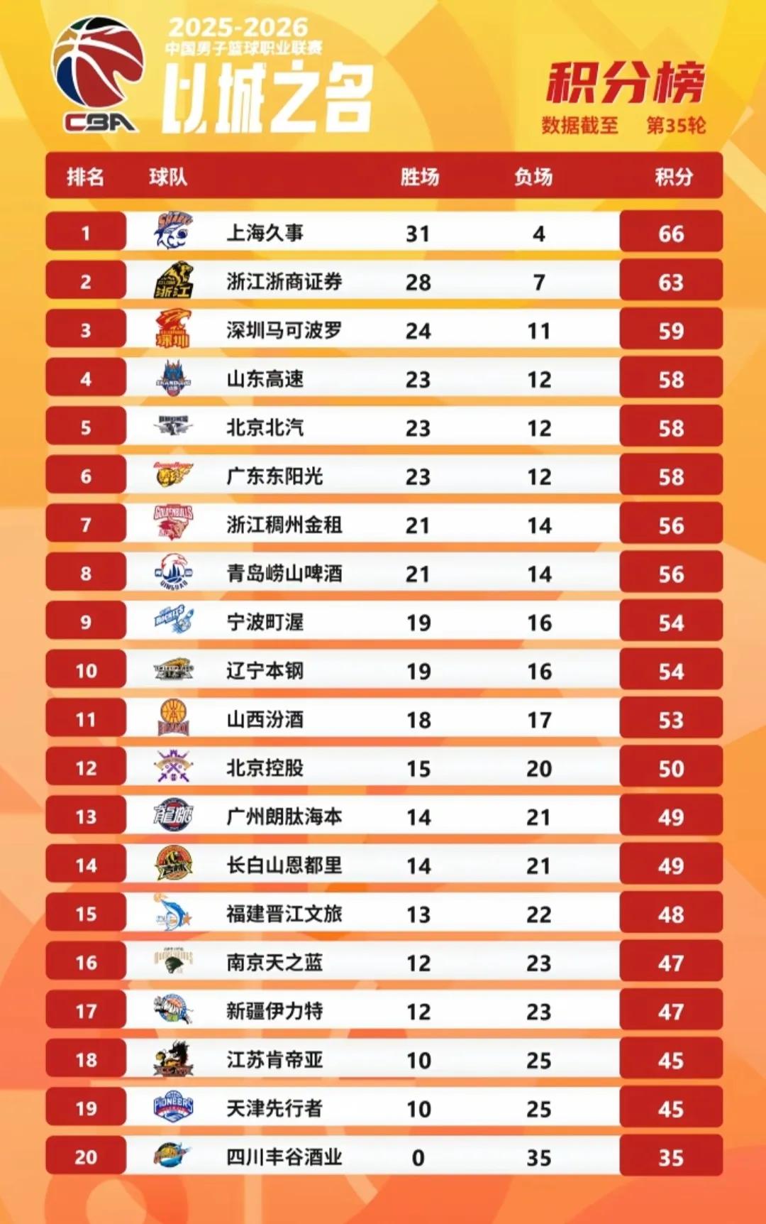 不敌山东,广东队排名一下子滑落到第六,可见竞争之激烈,悄不注意,也会落到第九,下