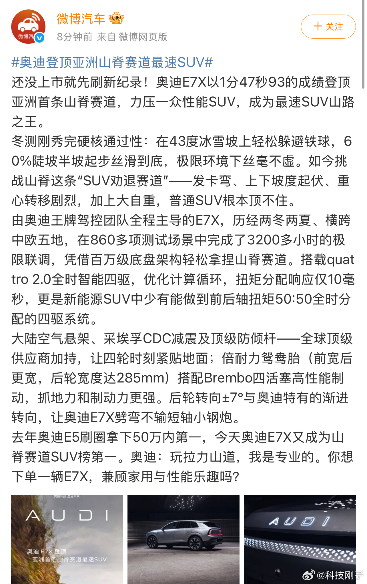 奥迪登顶亚洲山脊赛道最速SUV 还没上市就用实力说话!奥迪E7X以1分47秒93