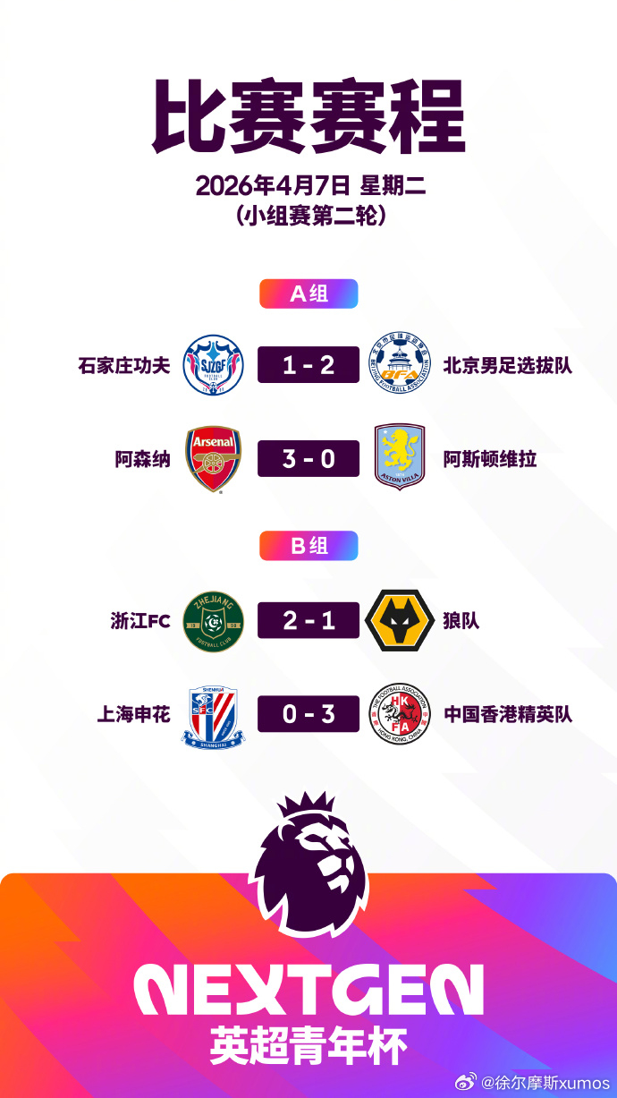 这两天的英超青年杯真的还挺有意思的:昨天北京队被维拉踢了个0-5石家庄功夫守了阿森纳个0-1今天阿森纳干维拉了个3-0北京队又赢了石家庄2-1今天上午浙江队还2-1绝杀了狼队这种比赛交流确实是有价值英超