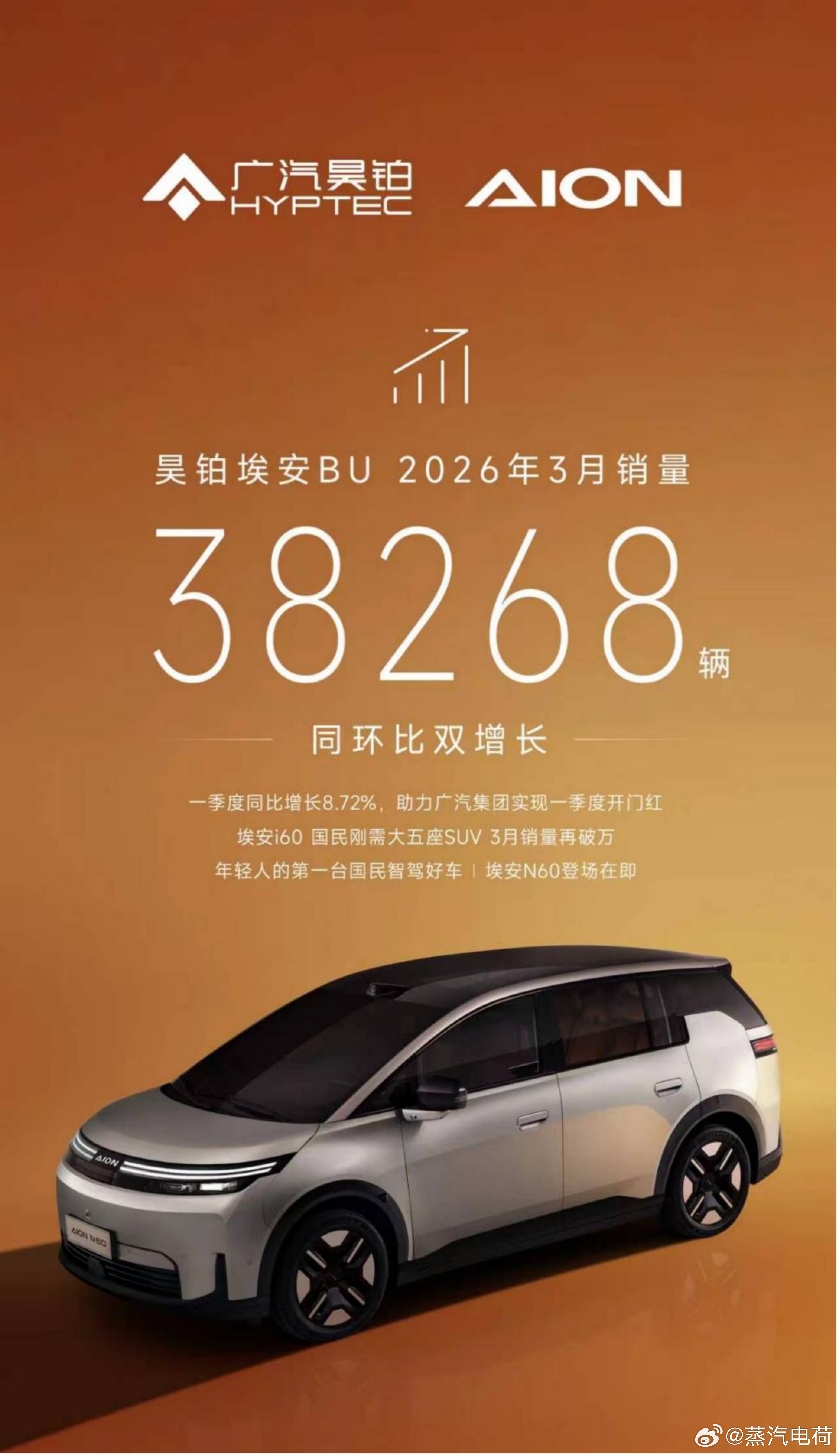 昊铂+埃安3月份销量:38268辆,同比增长12.28%,环比增长231.38%;1-3月销量共计75389辆,同比增长8.72%。埃安i60销量破万,这台车型是非常典型的家用SUV,很明显的借鉴了市面上卖的不错的车型,该有的不缺、后排空间很大。后续的新车埃安N60和这款车类似,同样强调性价比,年轻化的设计比较明显。目的很明显,就是要把销量抢回来。汽车销量