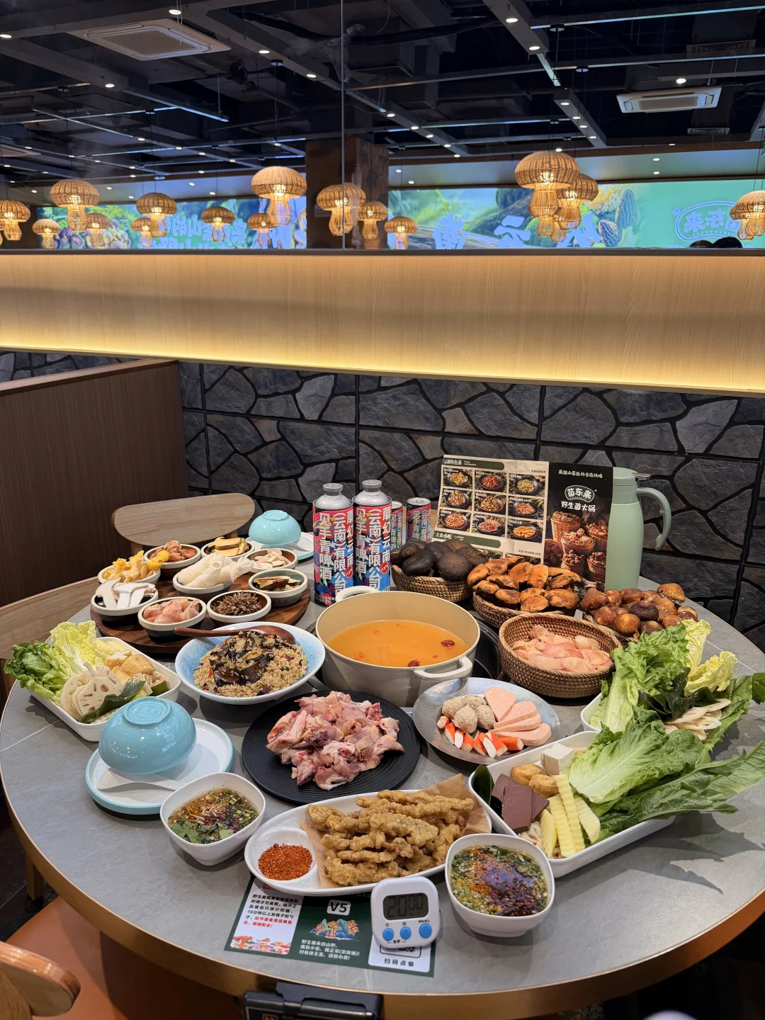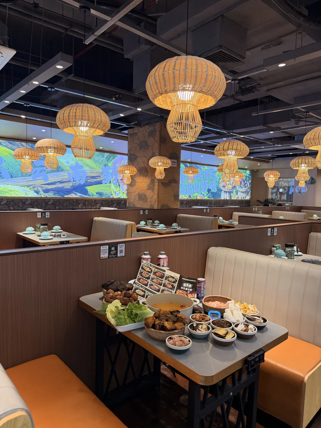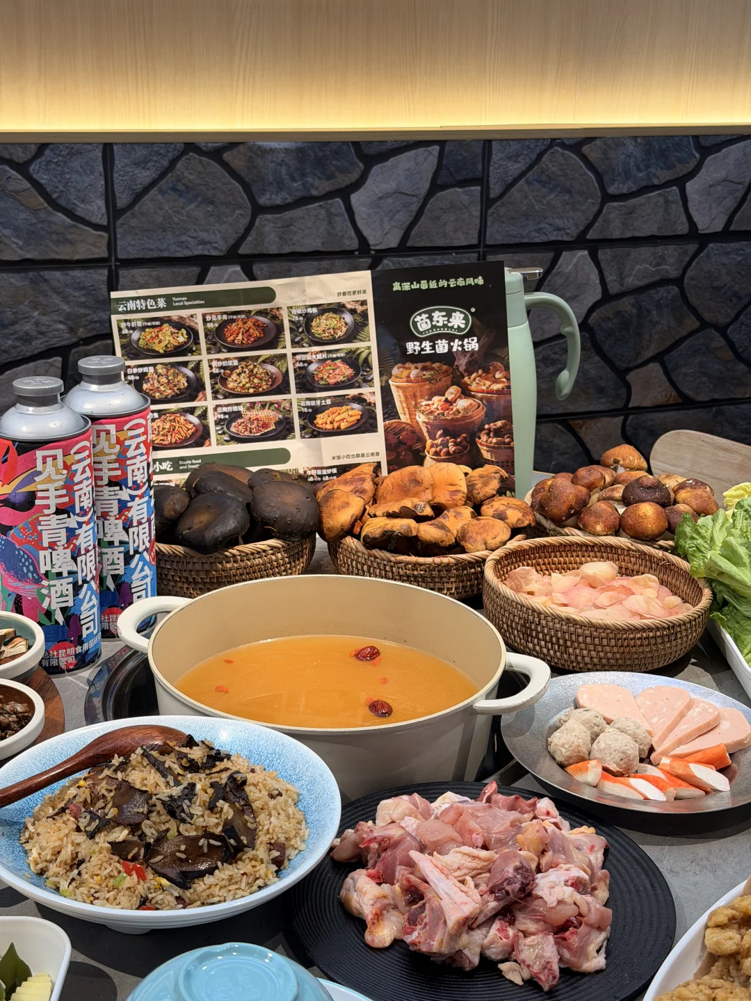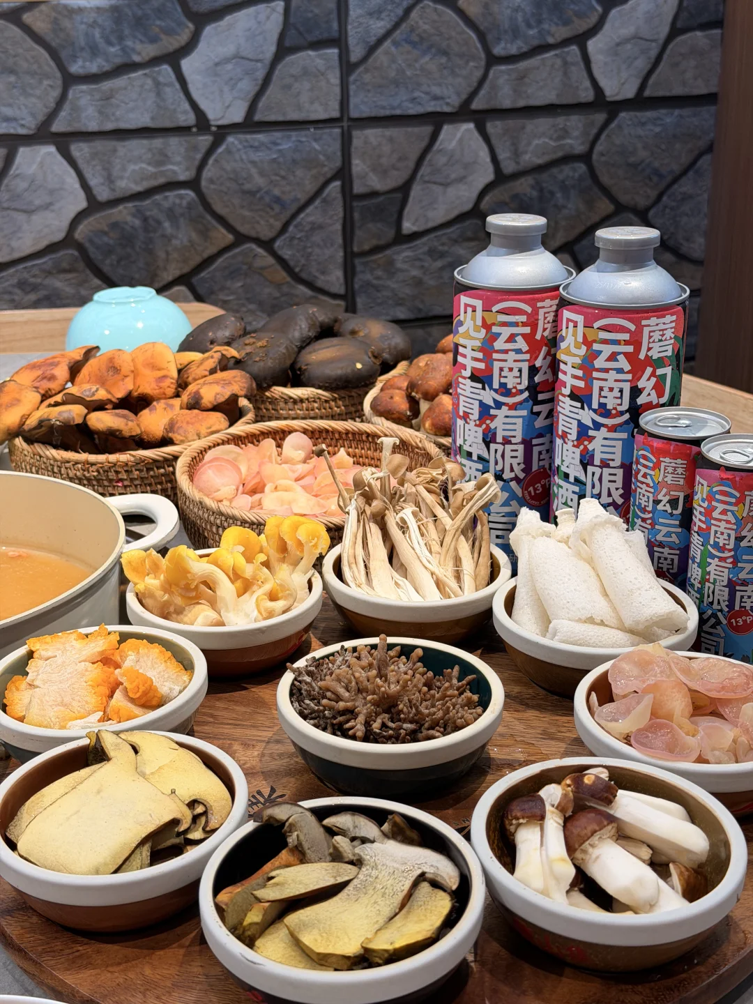 没想到在梅州也可以吃到超正宗的云南野生菌火锅!环境不错👍🏻,松茸、牛肝菌、鸡枞、见手青、竹荪、鸡油菌…满满一桌菌子直接看呆!