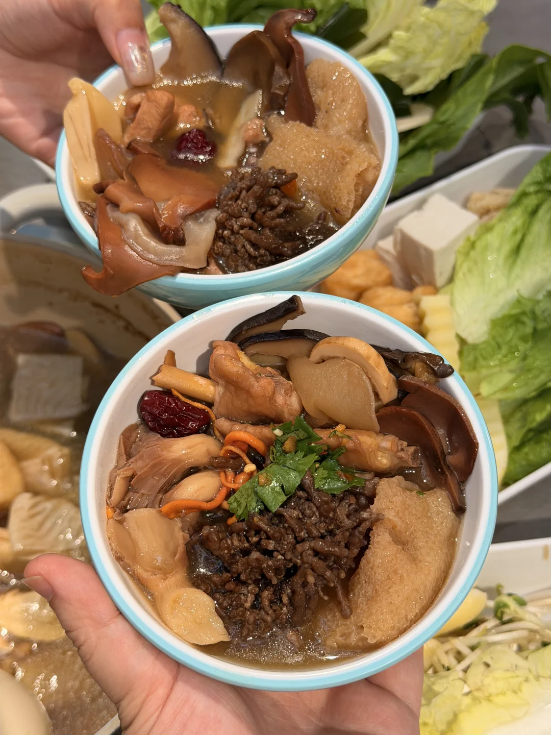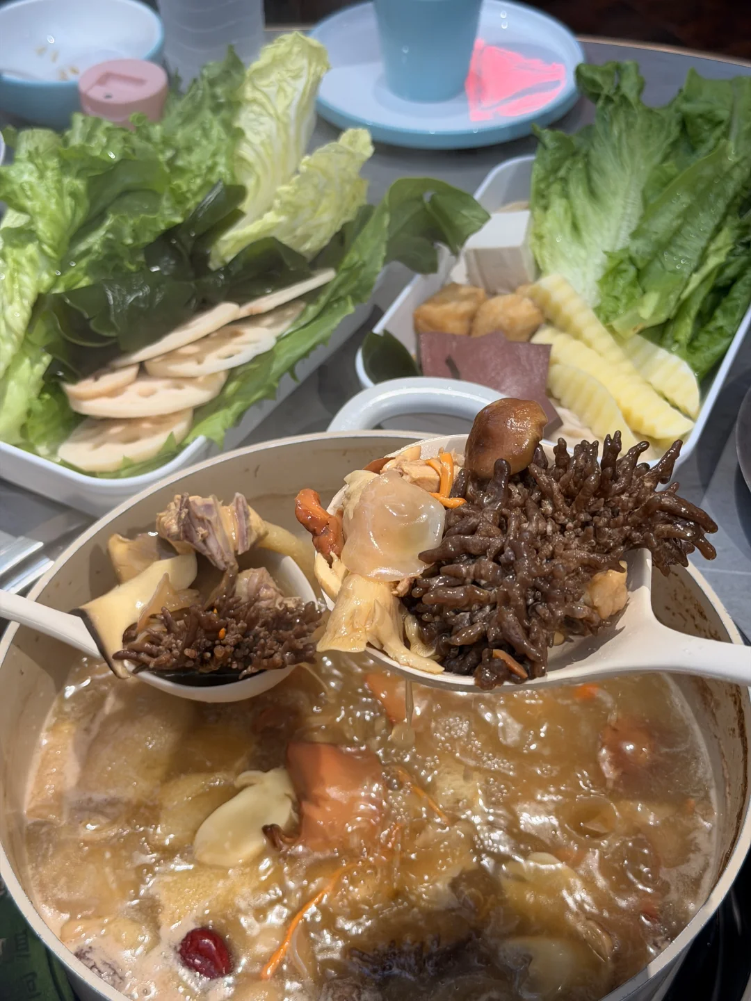 建议:开吃后先喝汤!!特别鲜美;各种菌蘸酱吃超绝!适量点即可,荤素搭配更佳;如果汤煮太浓了,可让服务员加汤。