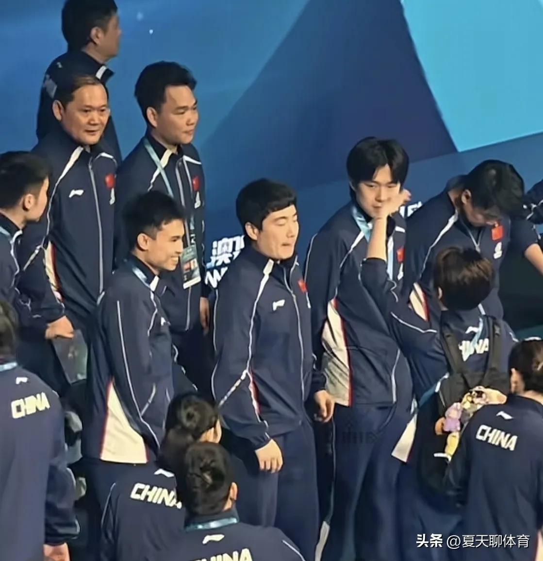 国乒大合影,王楚钦太暖心了。 大合影的时候,周启豪黄友政都很开心,而他俩