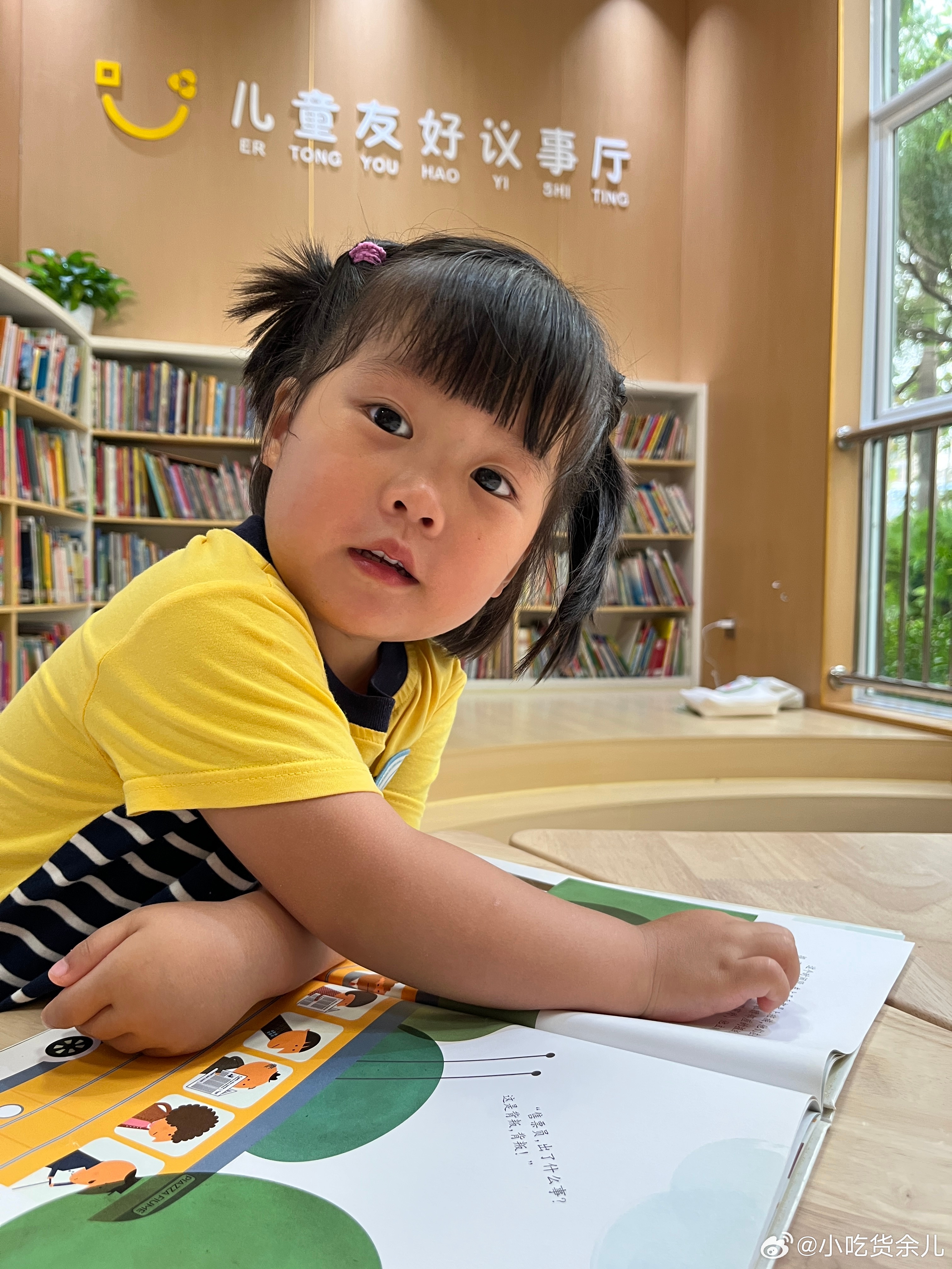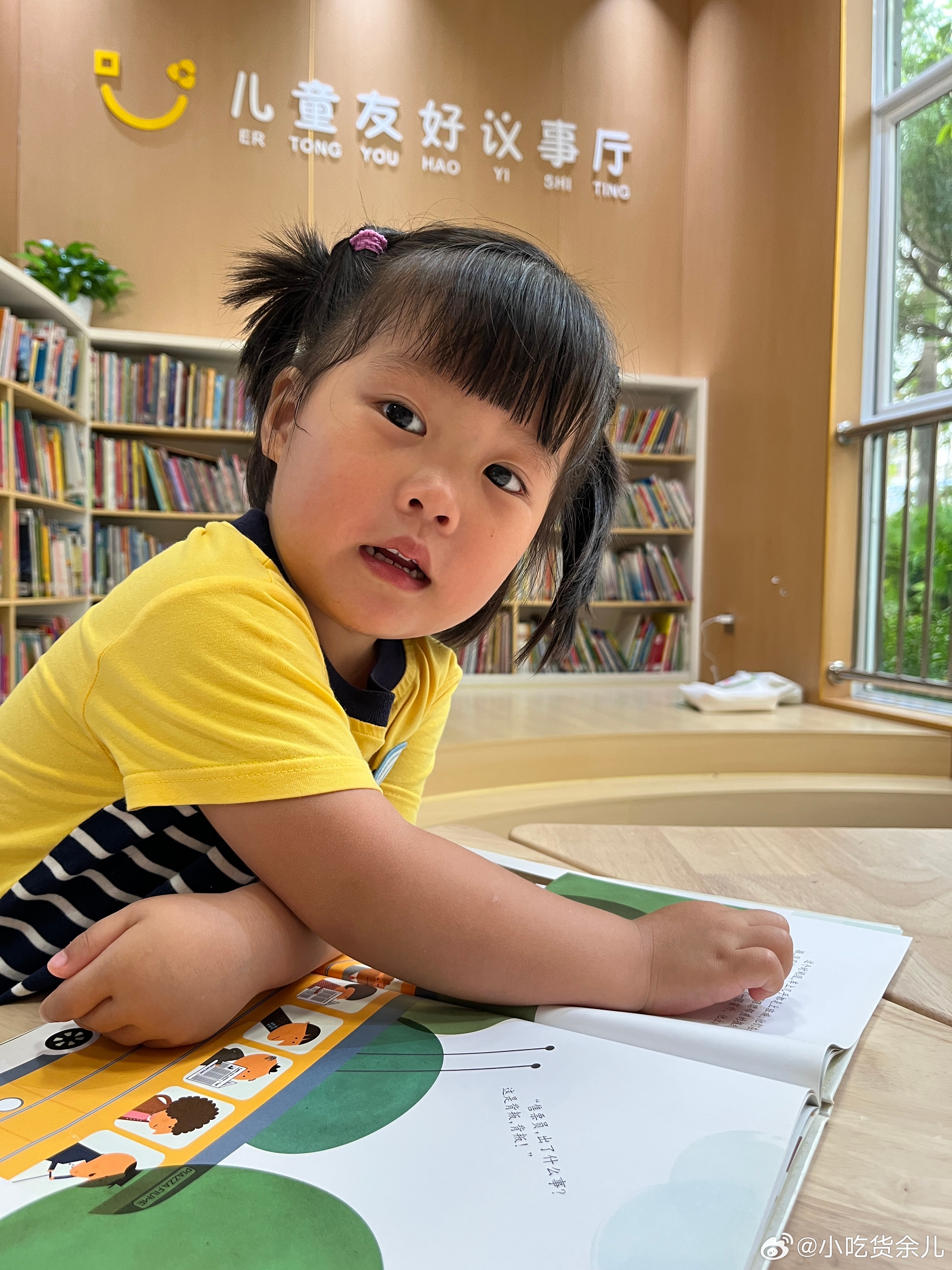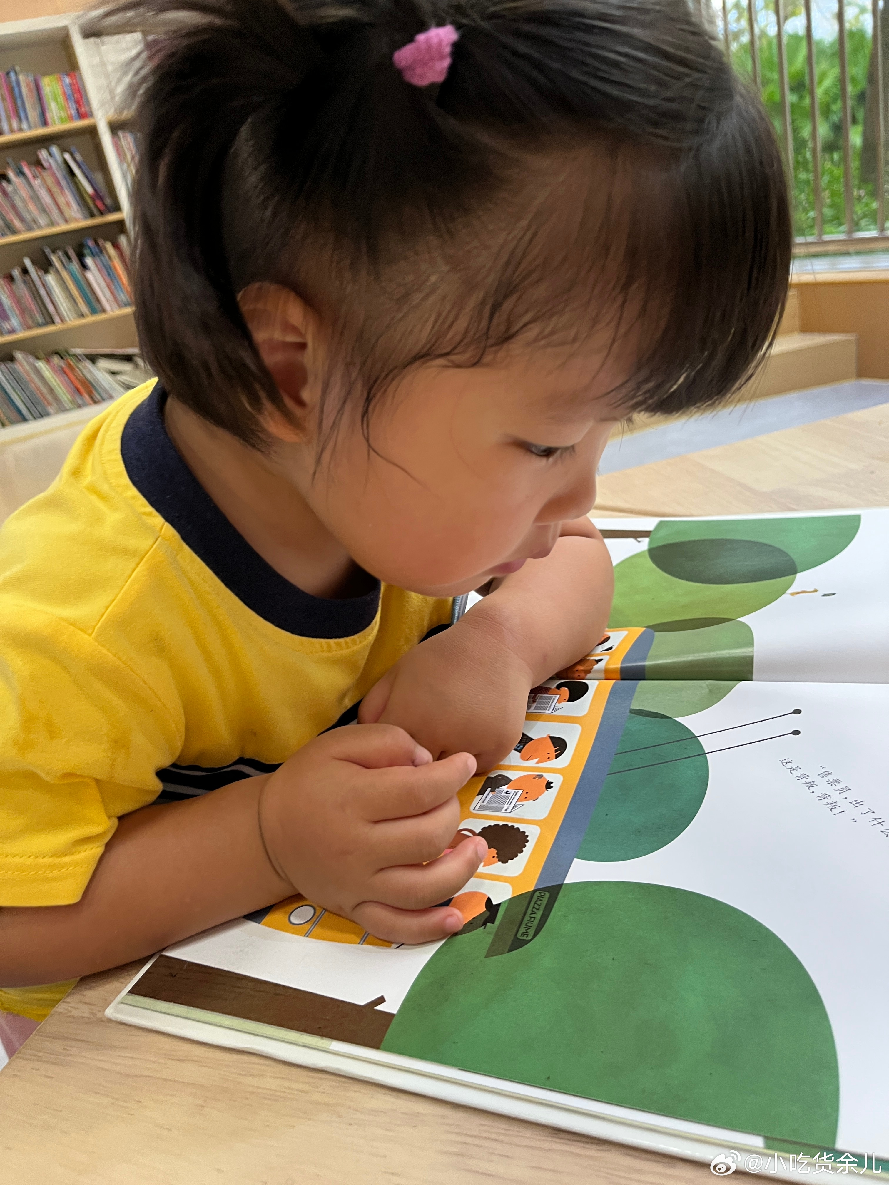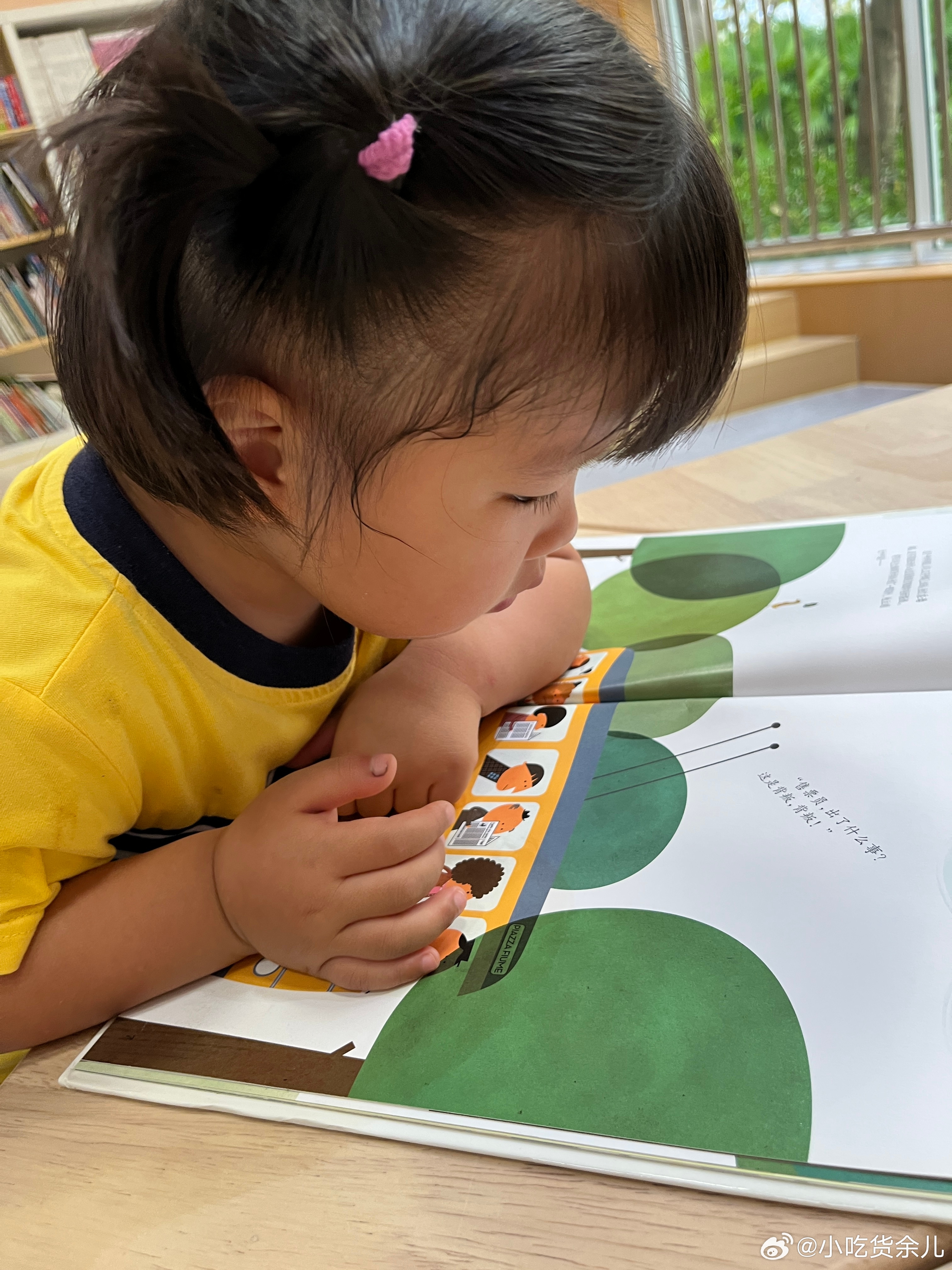 好久没来图书馆,一本正经的乱读,了字读成手字。现在看到自己的认识的字,会读给我听