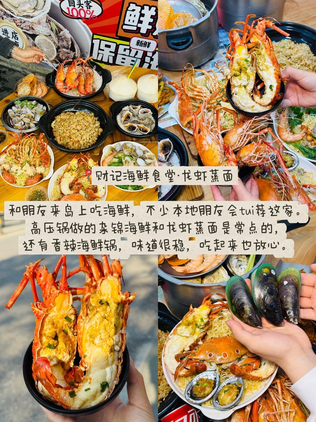 和朋友来岛上吃海鲜,不少本地朋友会tui荐这家。高压锅做的杂锦海鲜和龙虾蒸面是常点的,还有香辣海鲜锅,味道很稳,吃起来也放心。
