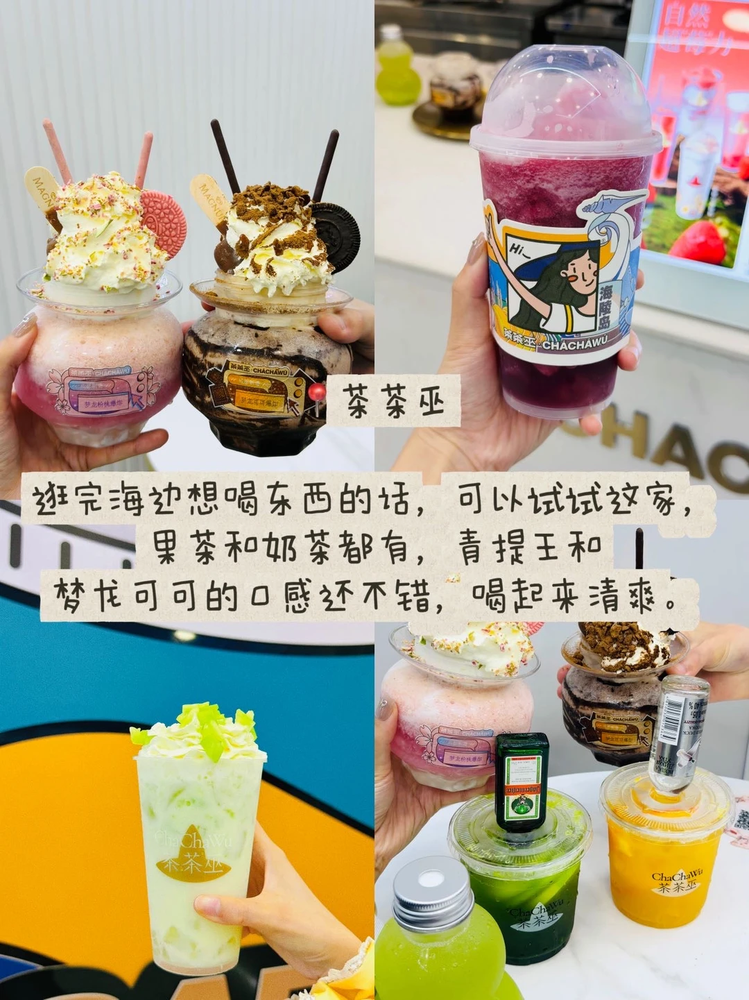 逛完海边想喝东西的话,可以试试这家,果茶和奶茶都有,青提王和梦龙可可的口感还不错,喝起来清爽。