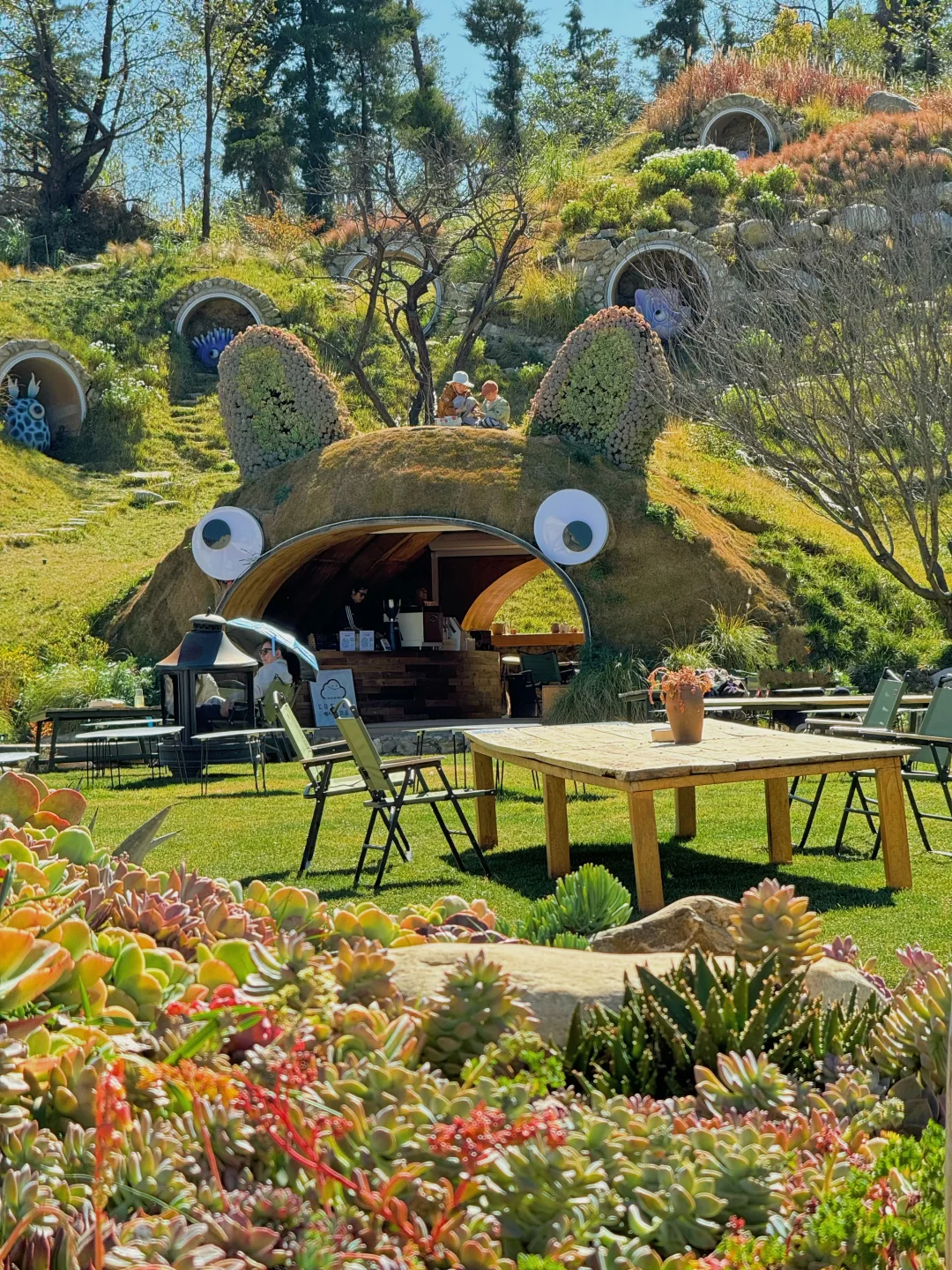 搭配小木屋、花径和清新造景,像闯进了治愈小世界