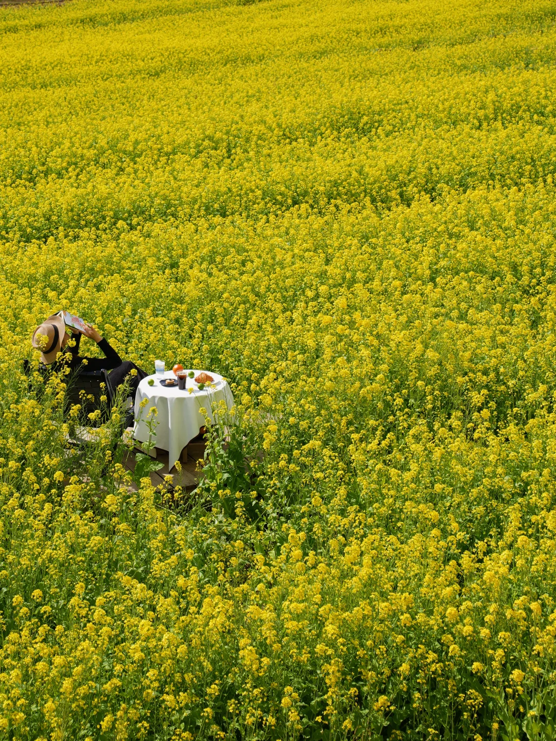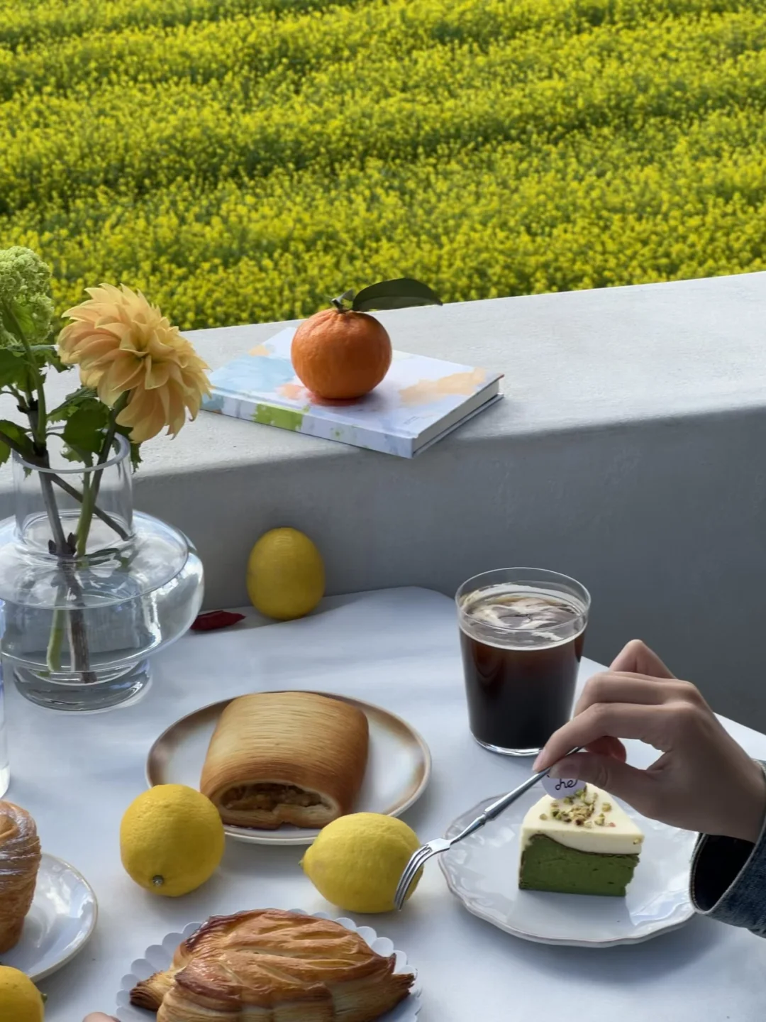 藏在油菜花海的治愈咖啡馆,环境安静舒服