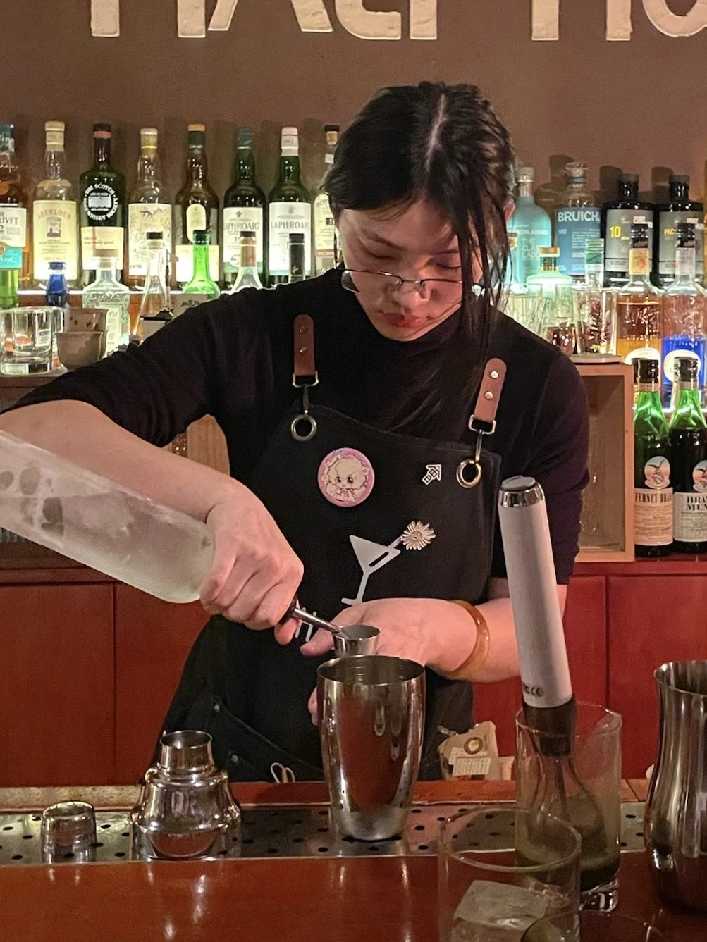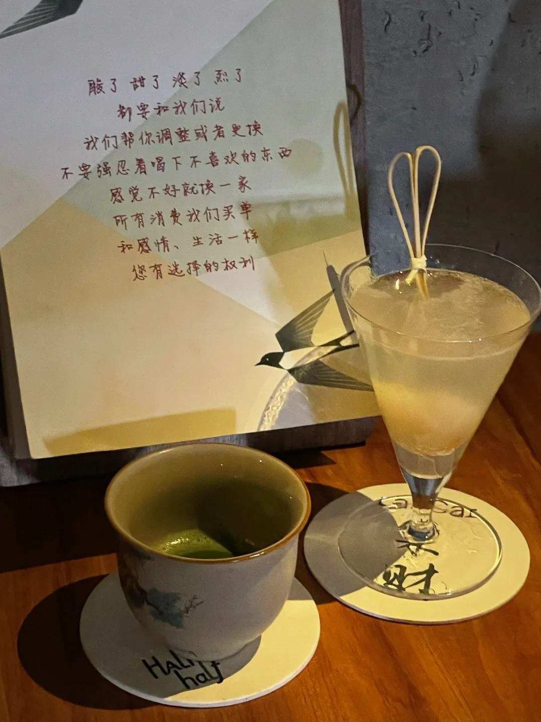 外间长条吧台,内屋沙发软座 一个人微醺、跟朋友小聚都刚刚好。 现在换了新调酒师,酒单每个月都换 9款特调,一杯比一杯有创意。 有糯米香那种越喝越上头的 有西瓜气泡、荔枝这种女生超爱的 还有啤酒花烟熏、香蕉波本、抹茶椰子 甚至蓝纹奶酪、黑松露、芥末辣椒酱油全都敢加! 另外还有隐藏款哦,🍓草莓highball 本以为是平平无奇的气泡水,入口才惊觉是藏在杯里的小惊喜。清甜草莓香裹着淡淡的草本气息,清爽不腻,层次温柔又鲜明。整杯都是春夏限定的味道。 店名:half half bar