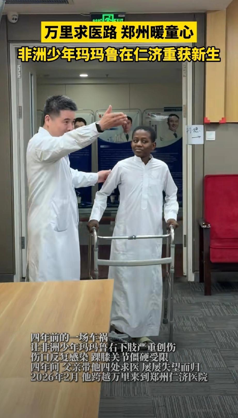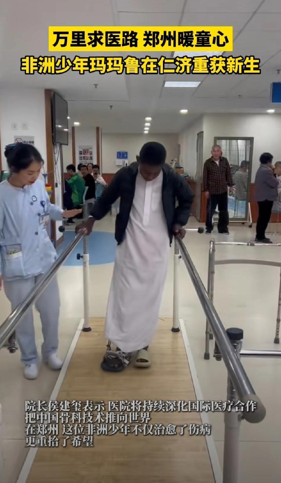 非洲少年跨越万里来医,医者仁心,祝非洲少年早日康复,中非友谊万岁。