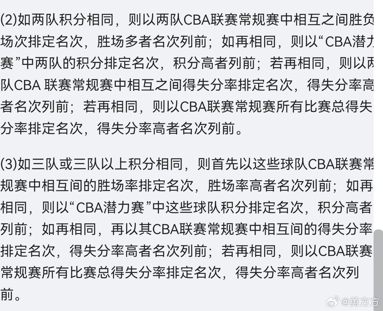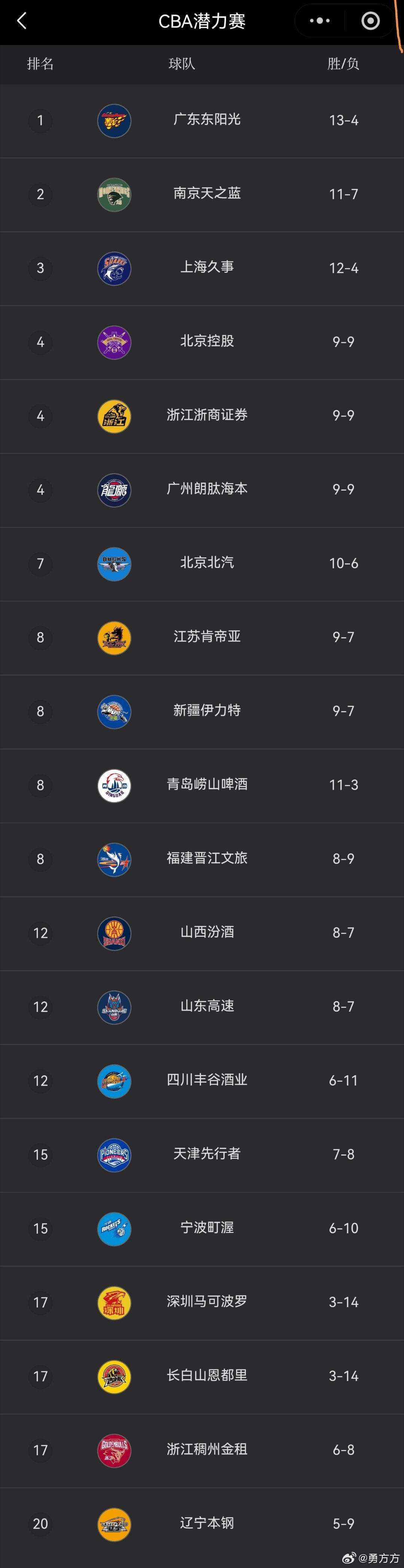 cba 看积分榜突然想到一件事,本赛季如果球队同分,先看相互胜负关系,如果相同不是继续比较相互比赛的小分,而是先比较潜力赛排名!