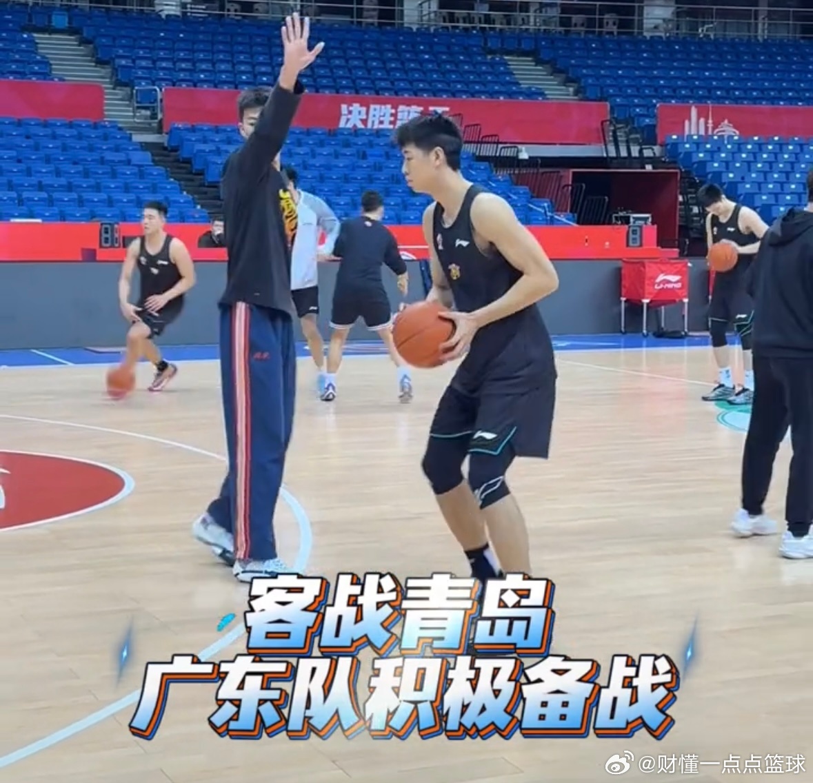广东宏远男篮备战青岛男篮的赛前适应性训练照来了,依旧是只有萨姆纳和奎因两外援出战,唯有希望明天本土核心球员徐杰、胡明轩、崔永熙要爆发,抓好开局,才不被陷入那么被动局面!青岛男篮也是硬骨头,目前排名联赛积分榜第八位,21胜14负的战绩,只落后广东男篮2个胜场差,青岛一定会全力以赴在主场拿下这场关键比赛的,因为这一场关乎能否稳进季后赛的比赛!明晚的比赛肯定会相当激烈和精彩,期待中!广东宏远青岛男篮vs广东男篮广东宏远