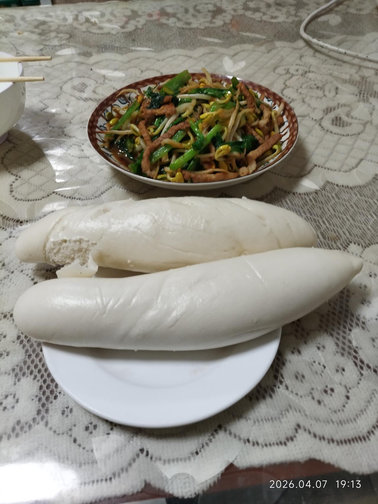 山东兖州物价太便宜了,一盘炒肉丝加上两个馒头才花14元钱。