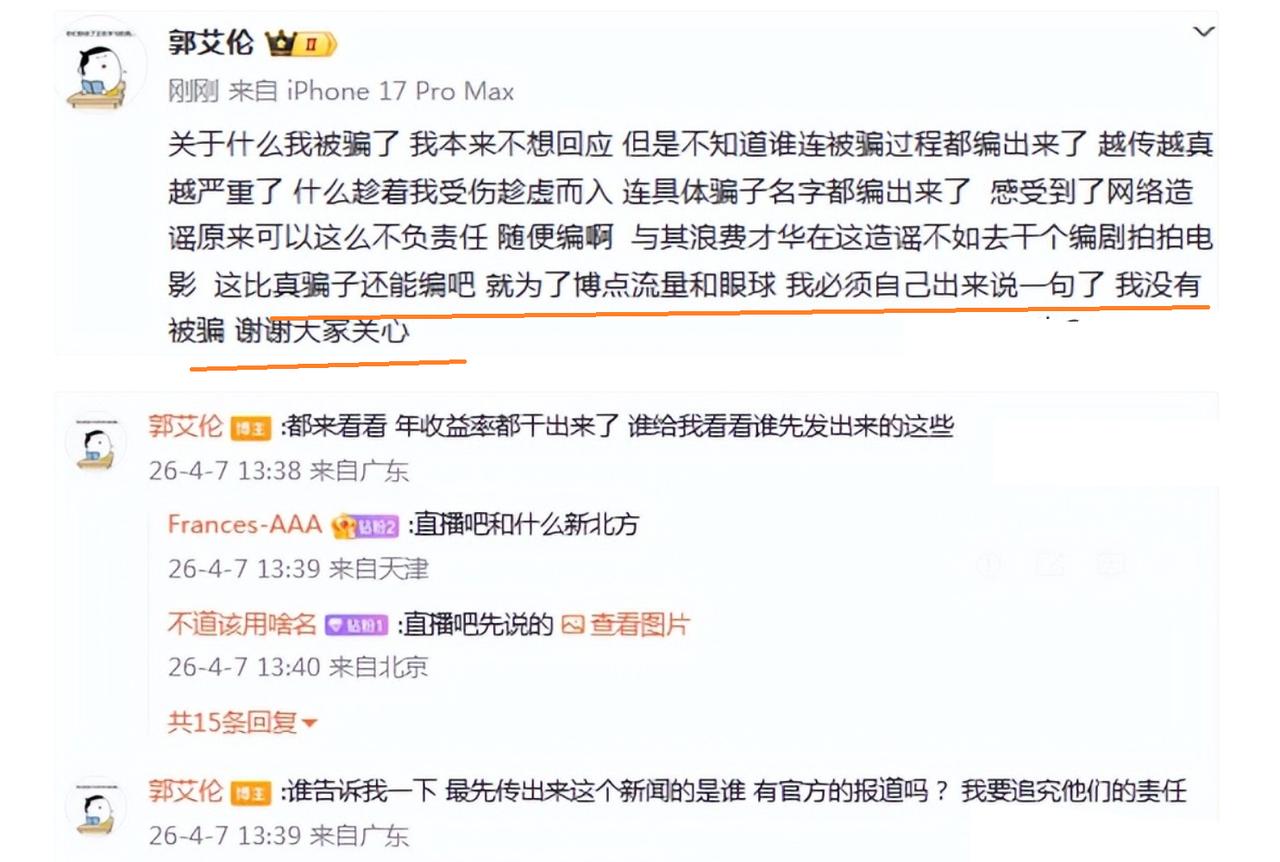 郭艾伦:我要追究责任! 最近CBA圈最热闹的瓜,估计就是郭艾伦被传“遭熟人诈骗近千万”这事儿了,传得有鼻子有眼,刷手机的球迷几乎都刷到了,一时间全网都在讨论这事儿。 说真的,一开始看到这消息,不少球迷都懵了,毕竟郭艾伦现在还在养伤,赛季都报销了,本来就够闹心的,居然还被传被骗这么多钱,还是熟人下的手,大家都跟着心疼,甚至还有人开始替他琢磨怎么追回钱财。 可谁能想到,这事儿居然是瞎编的!郭艾伦本人估计也被传得烦透了,直接在社交平台发文,语气里满是无奈和愤怒,看得出来是真的被造谣者惹急了。 他明确表态,网传“郭艾伦被骗钱财”的所有内容,全是凭空捏造、子虚乌有,压根就没这回事儿。而且他还吐槽,造谣的人太离谱,连被骗的细节、骗子名字都编得有模有样,简直离谱到家。 最解气的是,郭艾伦直接放话追责:“谁给我看看谁先发出来的这些,我要追究他们的责任!” 这话一出来,不少球迷都直呼“干得漂亮”,毕竟造谣一张嘴,辟谣跑断腿,换谁被这么冤枉都得急。 其实懂点的都知道,郭艾伦现在一门心思在广东养伤,连下地都费劲,哪有功夫去搞什么投资、被熟人诈骗,那些造谣的人,说白了就是为了博流量、蹭热度,毫无底线。 后来郭艾伦工作室也发了声明,力挺他,说这些谣言已经侵害了他的名誉,会依法追究造谣者的责任。真心希望郭艾伦能安心养伤,也希望那些造谣的人能有点底线,别为了流量瞎编乱造,不然迟早要为自己的行为付出代价。