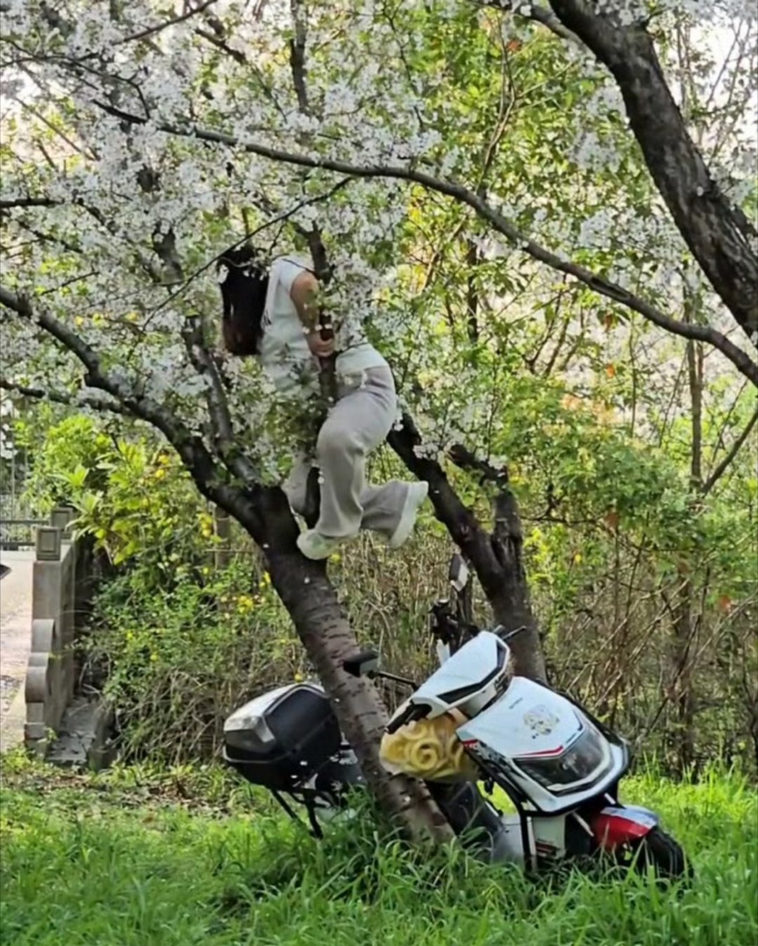 上海女子爬树压塌20年樱花树昨天我也刷到这个视频了,今天才看到说这棵树竟然已经有二十多年树龄了,被她这么一压,根都被压断了,真的看得令人生气!自己那么重跟头猪一样爬树上想干嘛?哪顶得住啊,把她照片贴在公园公告栏警示就对了,太可恶了这种行为,正常人都只在树底下拍个照就算了,还拿摩托车顶着爬。。