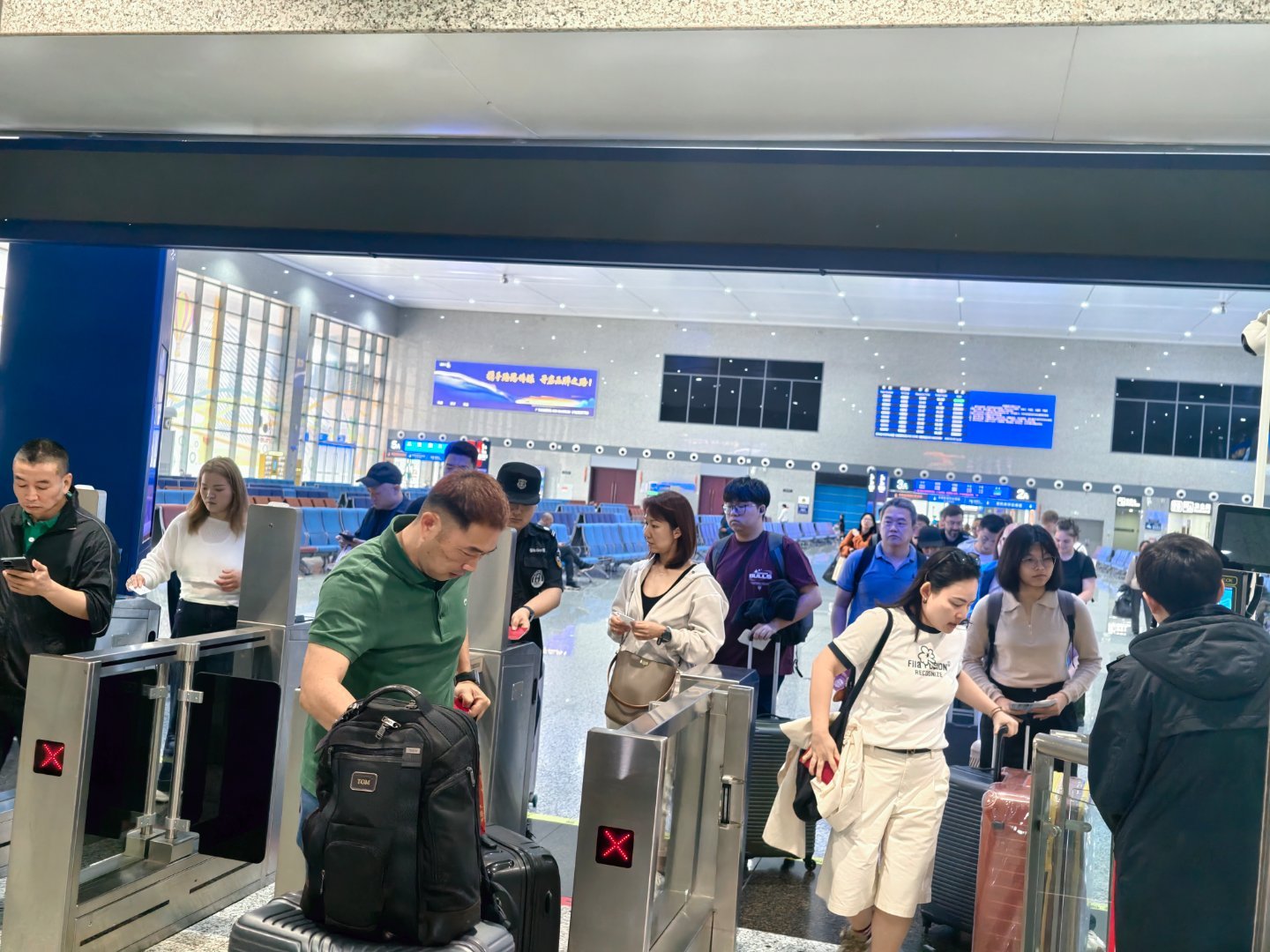 去成都的动车,排队,发现有一条队伍排的非常长走进了才发现,这些人拿的都是护照…因