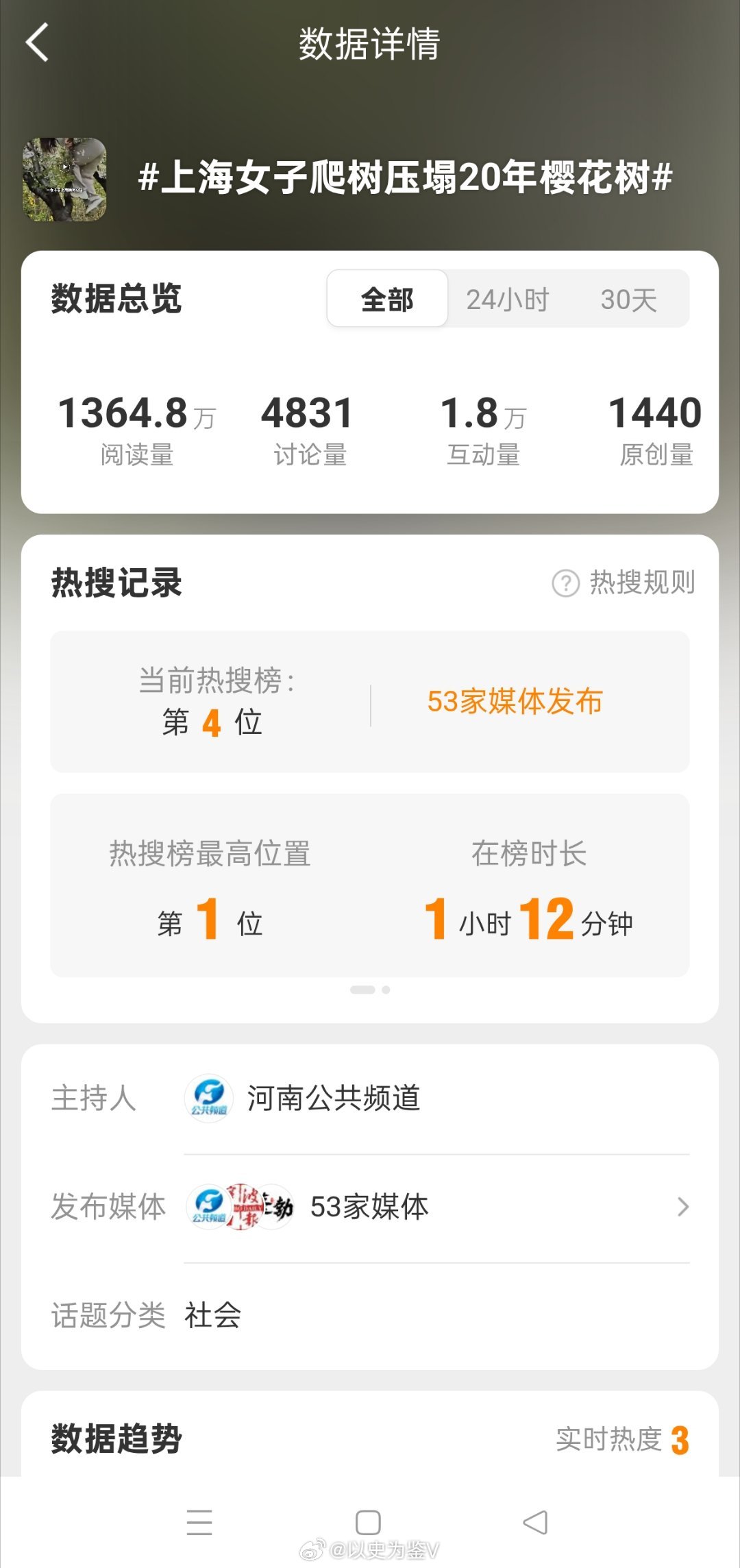 上海女子爬树压塌20年樱花树哈哈哈哈,这个新闻干到热搜第一了