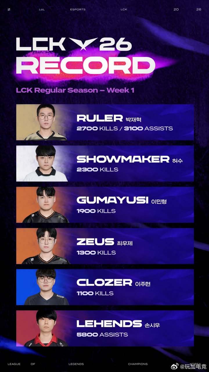 LCK常规赛第一周成就记录: