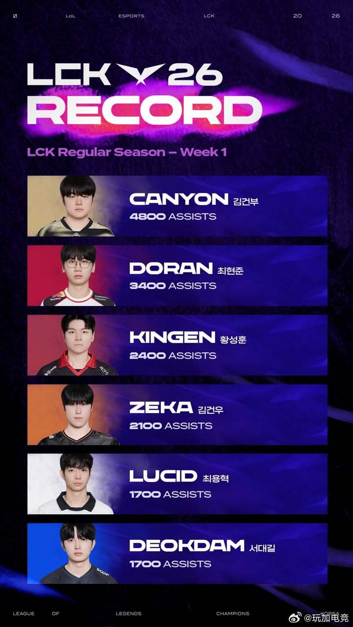 LCK常规赛第一周成就记录:Kiin达成出场800次、3900助攻成就Aimin
