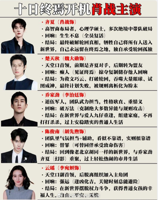 按《十日终焉》现在这个选角,必爆了吧肖战巨男主,魏大勋、胡先煦、章若楠、毛晓彤、