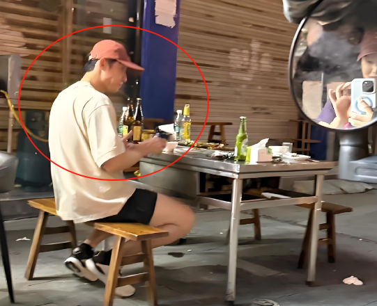在街边的烧烤摊、在小区的健身器材上、在凌晨街头的林荫路下......黄景瑜就好像一个NPC,随机出现。