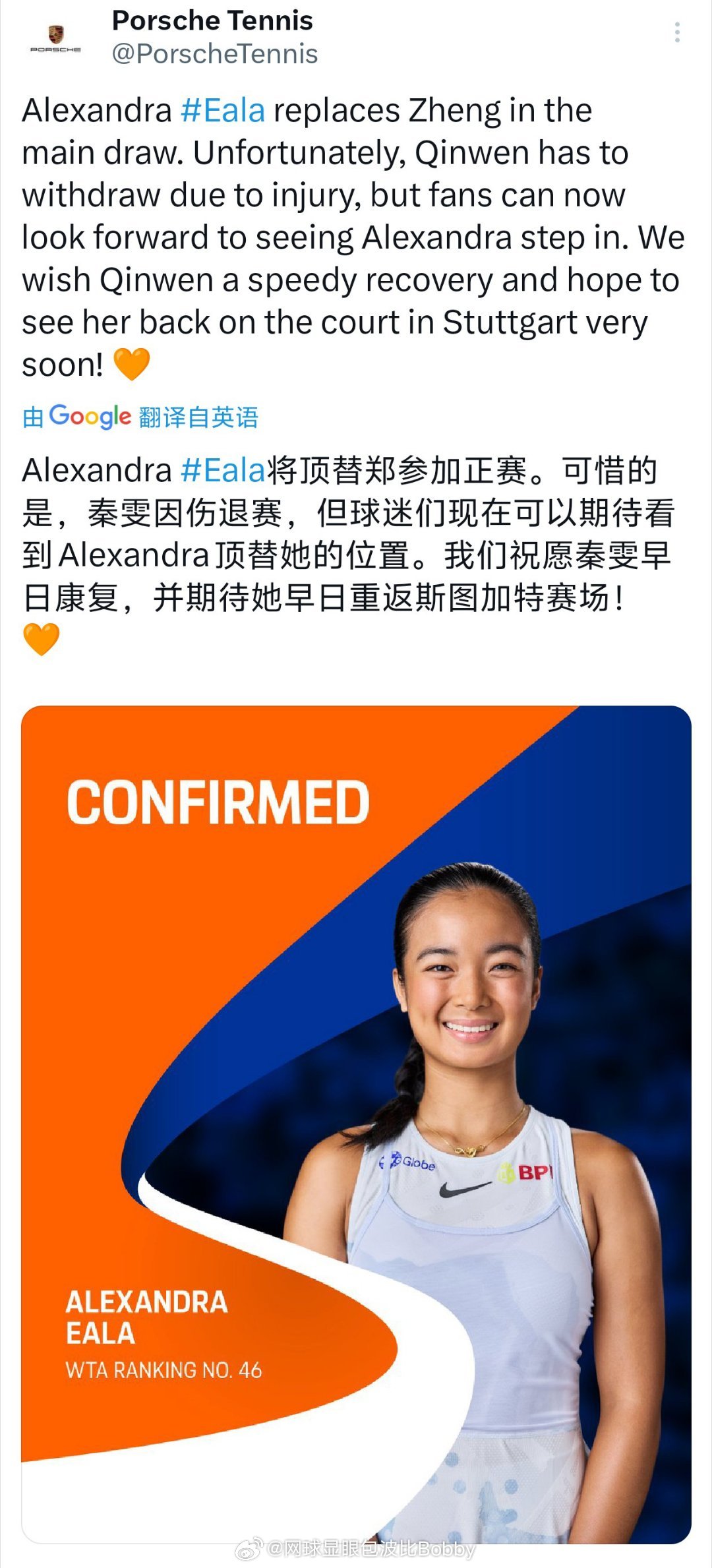 郑钦文因伤缺席斯图加特赛 郑钦文因伤退出WTA斯图加特抢车赛🥶菲律宾🇵🇭伊