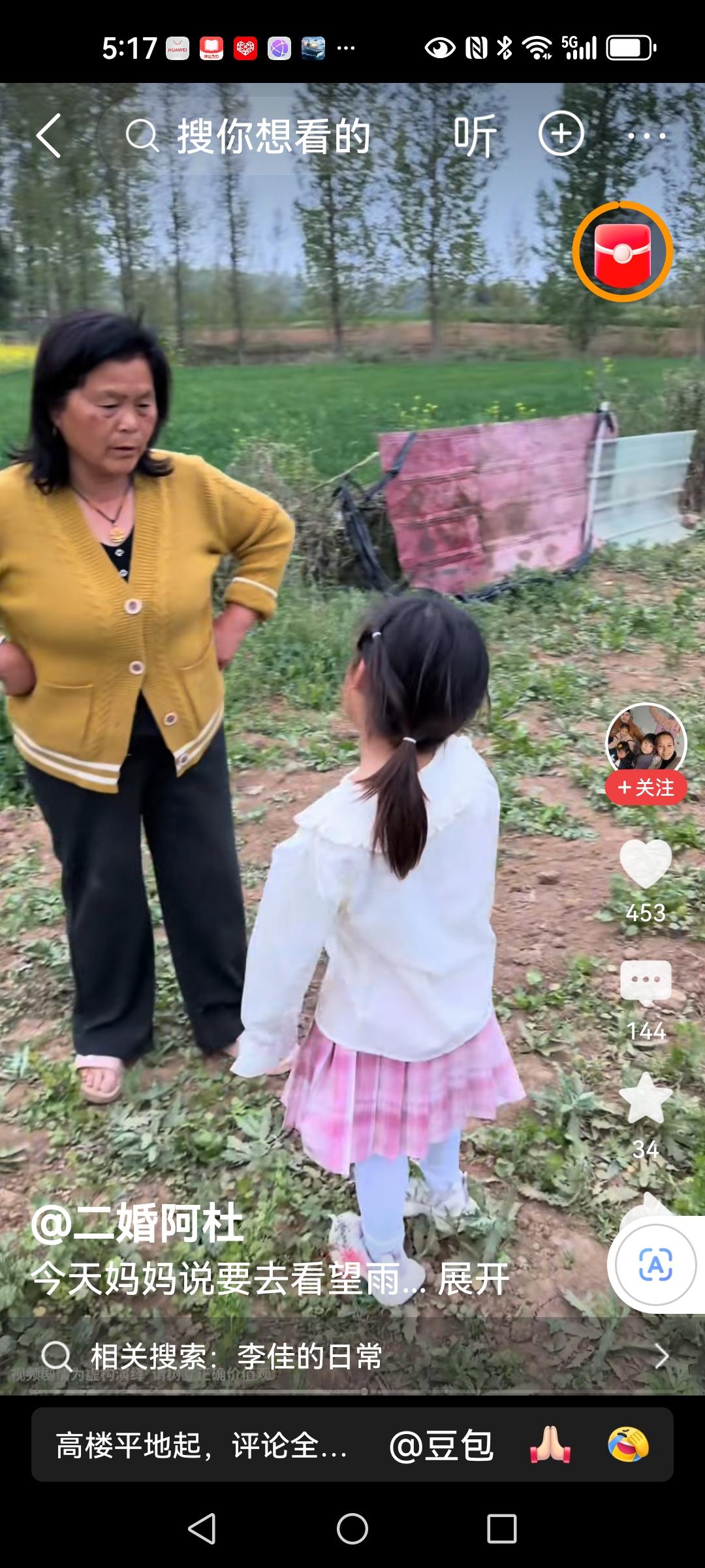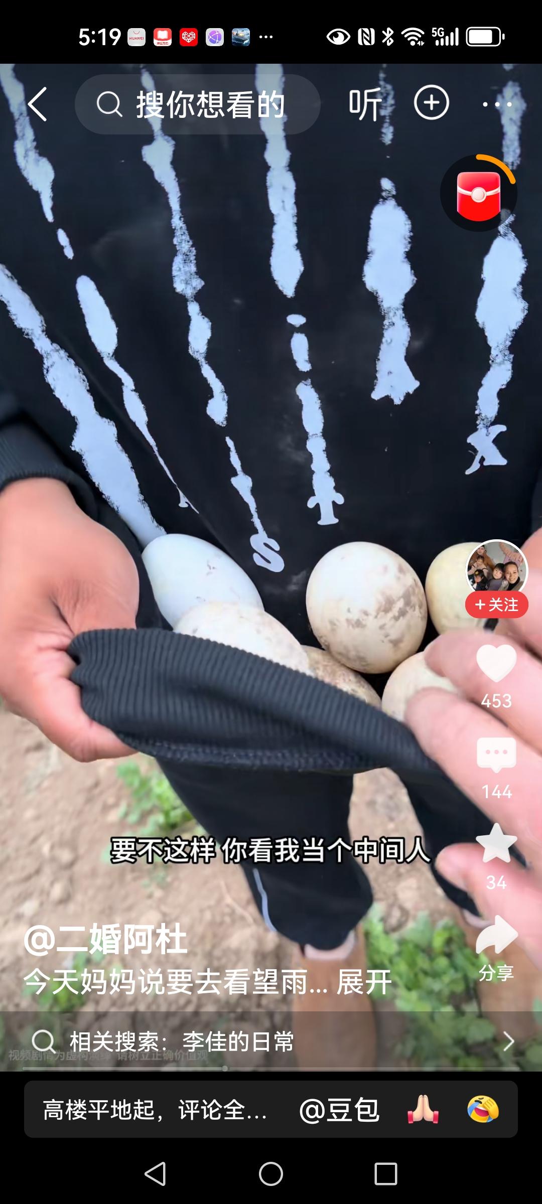 李佳要回鹅蛋 老壳子每天找李佳事,不是拿吃的,就是抢吃的,趁李佳接学生的时间,老壳子赶紧来拿东西,今天拿的鹅蛋,被老汉子拦下,她还理直气壮,给怀孕闺女拿几个怎么了。 依依告诉她爸爸,她没有不拿的东西,赶紧让他管管他妈。 以闺女的名义拿鹅蛋,实际上是自己吃,记得之前去闺女家带几个(恩泽给的)苹果吗?在直播间里她自己吃了一个又一个,剩下的品牌方给她扔了,撒了一地。 这次看到大棚门锁住了,省的到时候又让她拿西瓜藏一屋子。 真是日防夜防家贼难防。