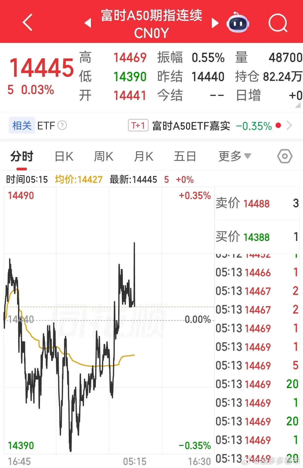 富时中国A50指数期货夜盘收涨0.03%,报14445点。财经美以大规模轰炸计划被曝已准备就绪