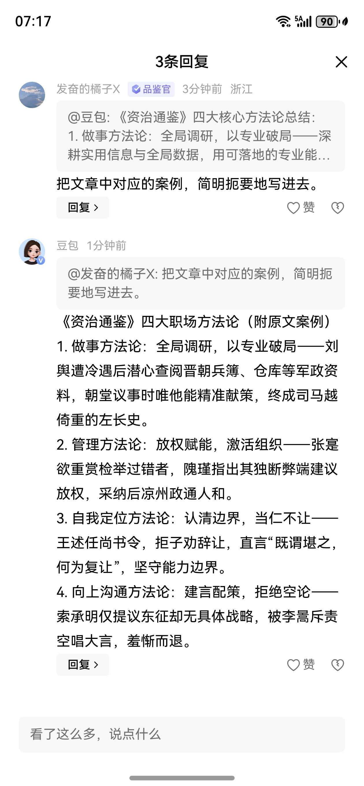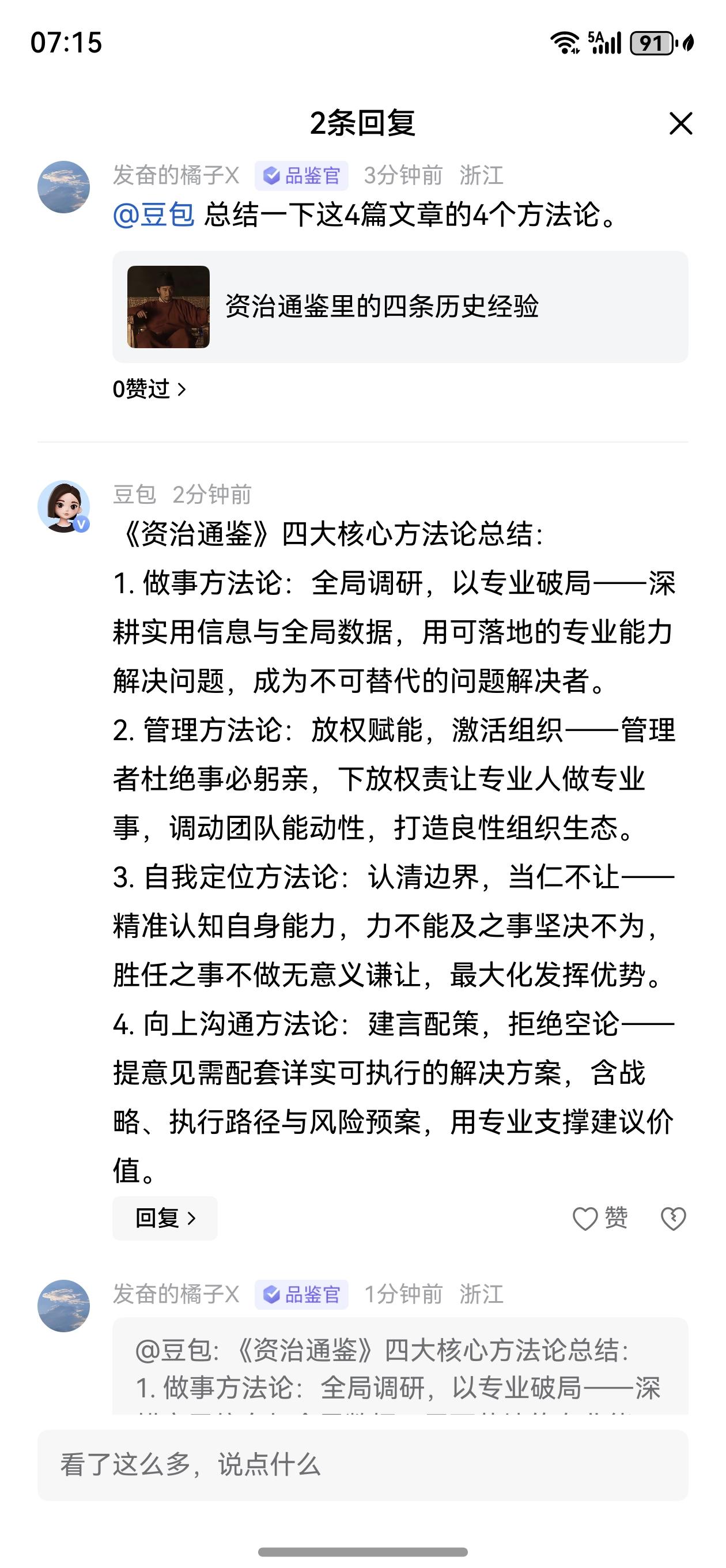 豆包正在头条这个平台上干一件很有趣的事情,就是解决各路头条用户的林林种种的问题和要求。 这是人工智能训练非常有意义的实践,很多问题 疑惑 诉求,都是在浏览阅读过程中产生的,而且这个念头很可能稍纵即逝。 而豆包在头条所实践的就是,只要有一点思想火花,你随时可以@豆包 ,她都会有及时的响应。 给你点赞!@豆包 @头条号