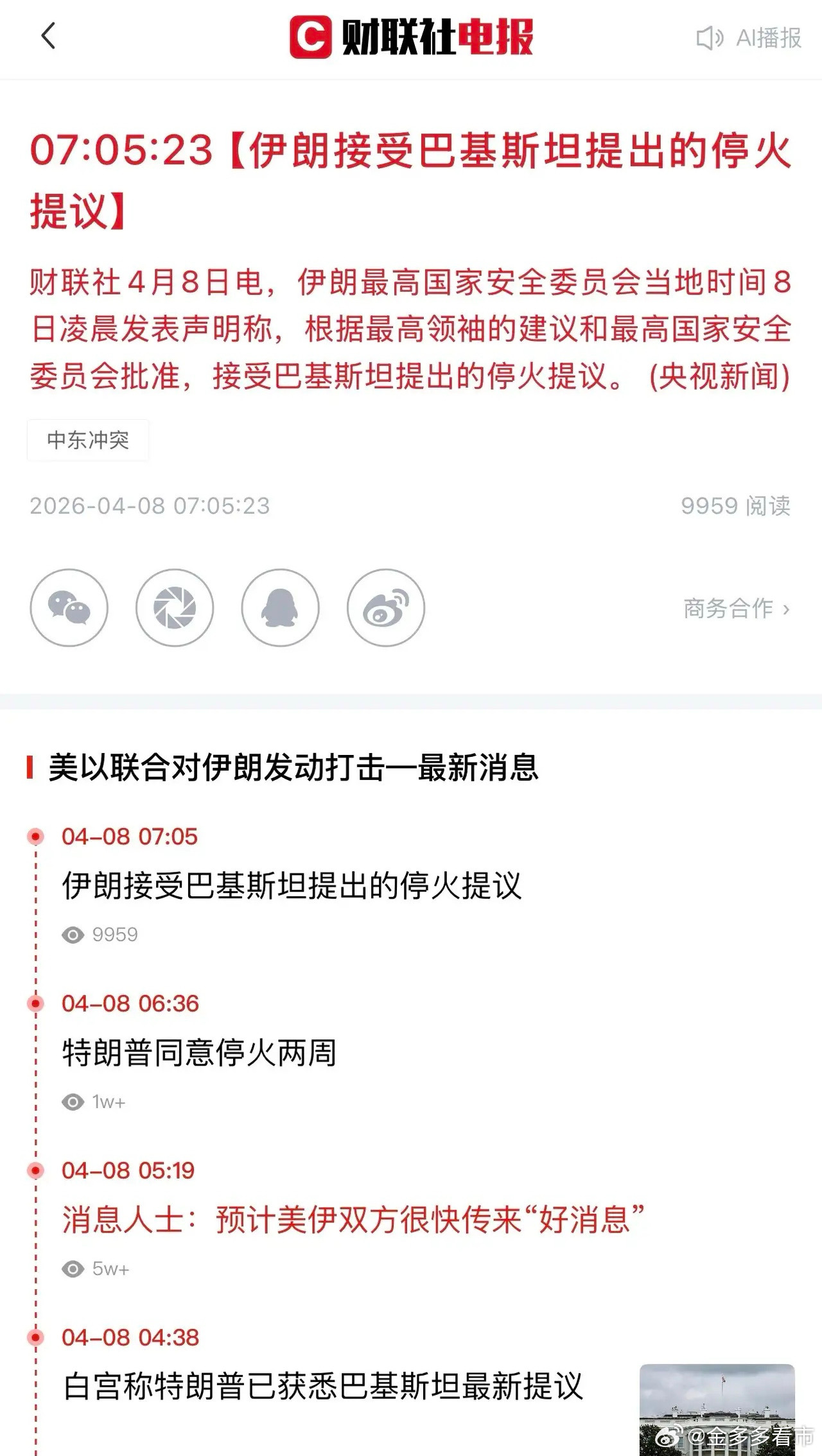 川普同意停火两周,伊方接受巴方提出的停火协议,将要在10号的时候开始进行谈判;