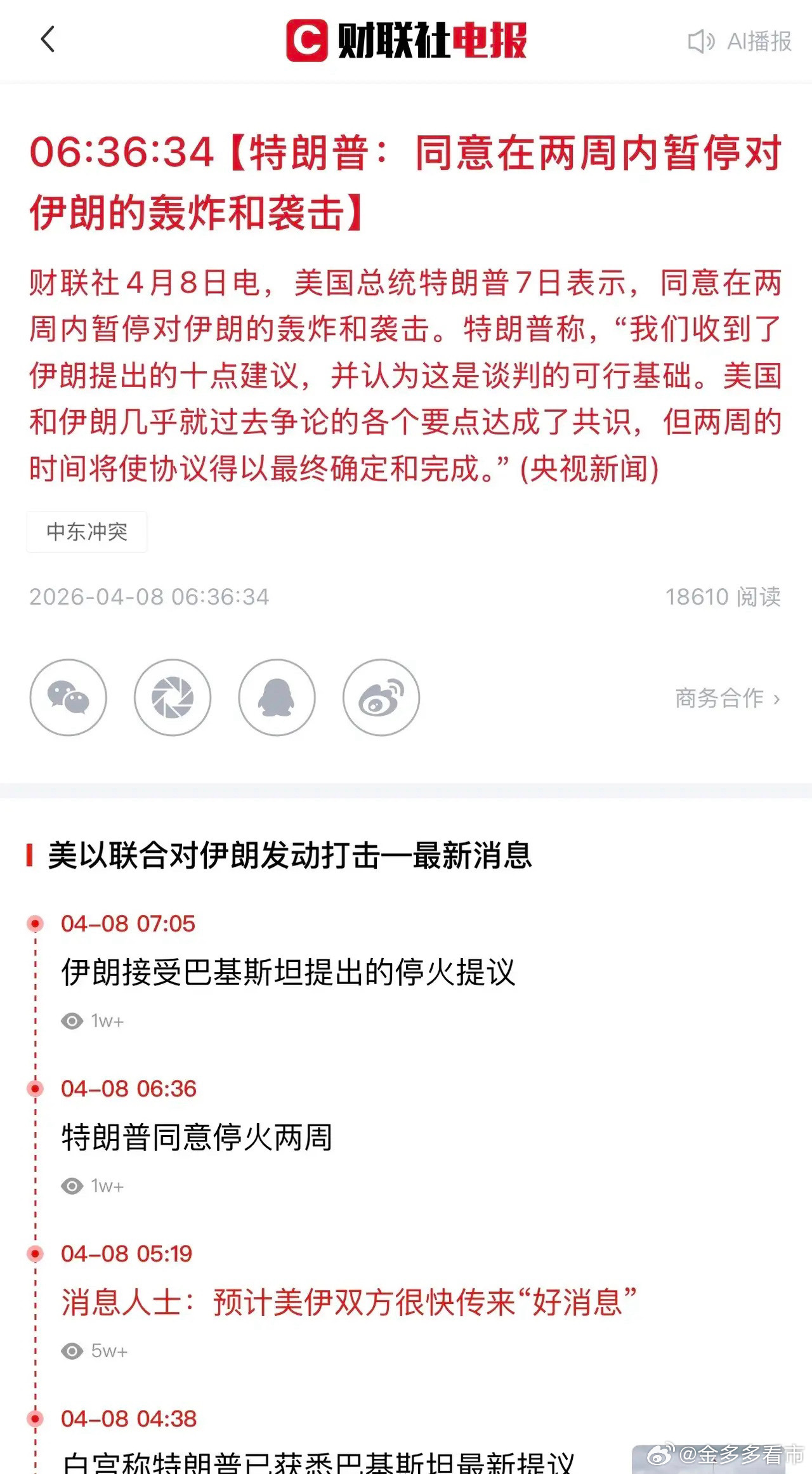 特朗普同意停火2周停火了,终于停火了,这可真是个重磅利好!川普称同意停火两周,今