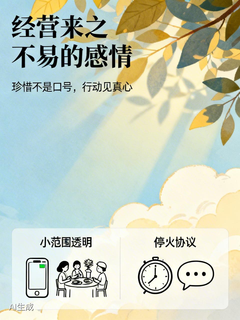 经营一段来之不易的感情,得把“来之不易”放心里。每段感情背后都有想放弃的瞬间,珍惜不是口号,得落实到行动。
