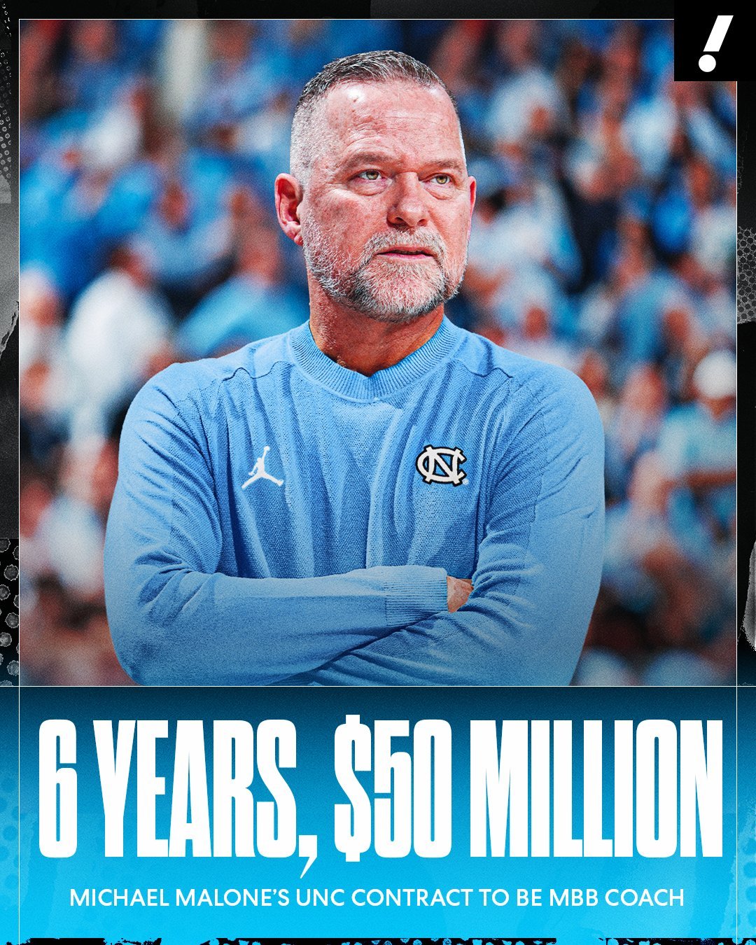 迈克-马龙与北卡罗纳大学的合同为6年5000万美元!
