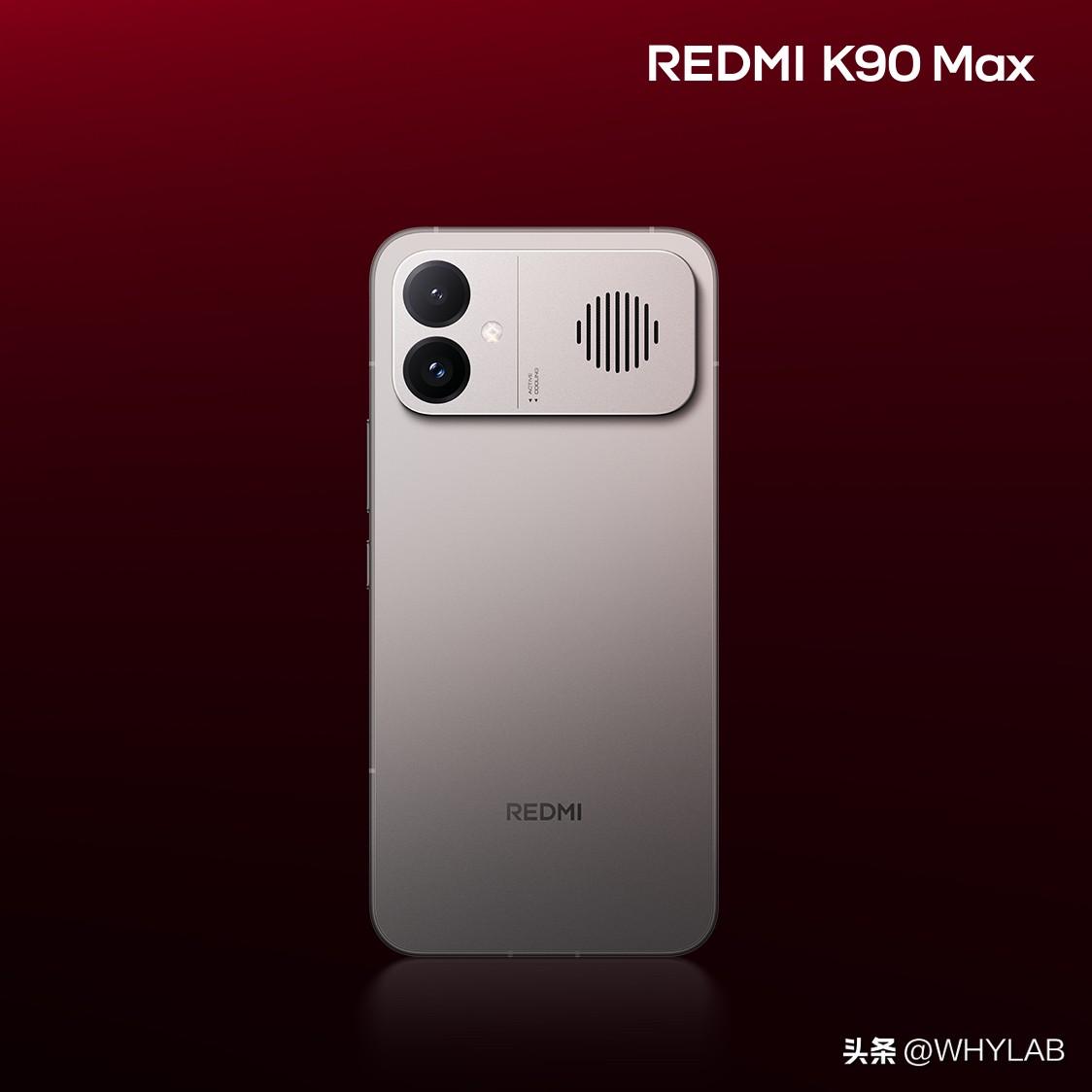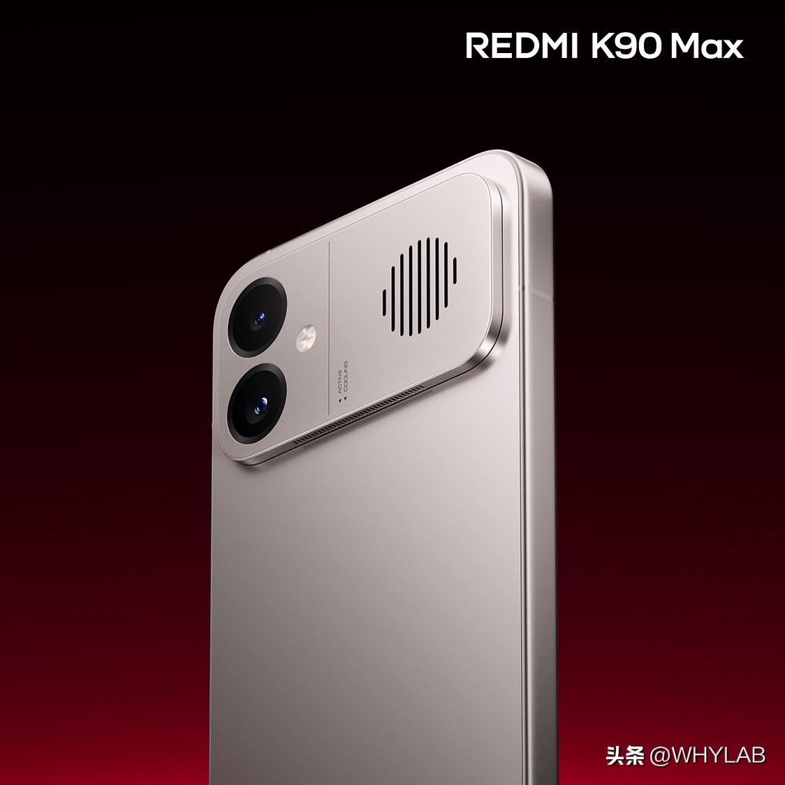 REDMI K90 Max 外观公布,主打色「太空银」,铝合金中框,Deco 处有极简格栅开孔,保证了主动散热风扇的最大进风效率,挺包豪斯美学的。