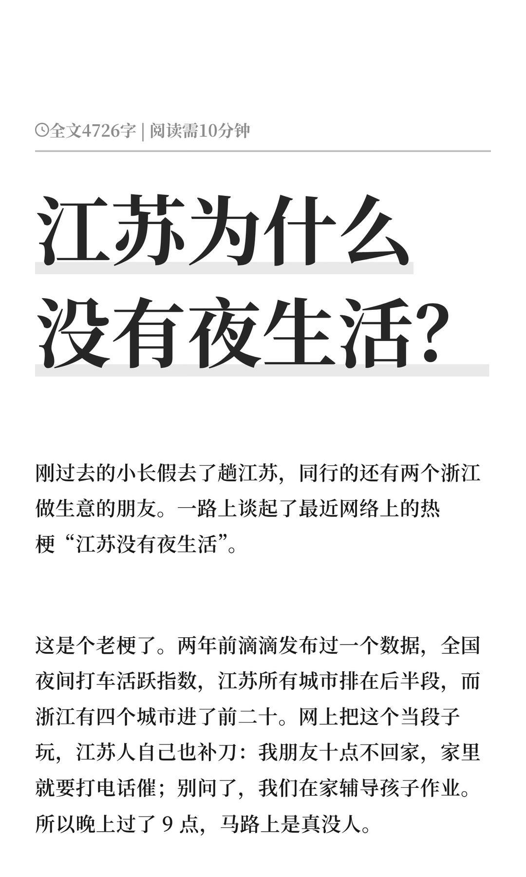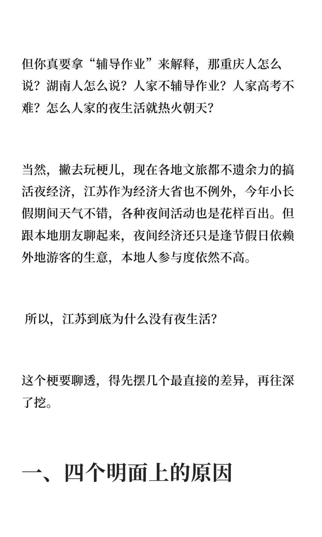《江苏为什么没有夜生活?》讨论量好几千的帖子,看了下觉得有点意思。