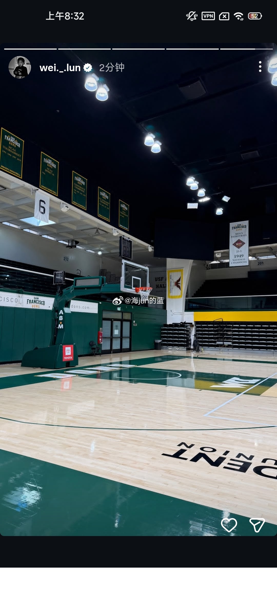 淡厚然和林葳也将申请转校,如此一来,上赛季中国的6位NCAA男球员,有4位已经正式申请转校。目前赵维伦还没有转校的消息,几分钟之前他的社交媒体还拍了旧金山大学的场馆(图四),另外蔡崇信篮球奖学金 的李信仪也没有转校的消息。海外中国球员