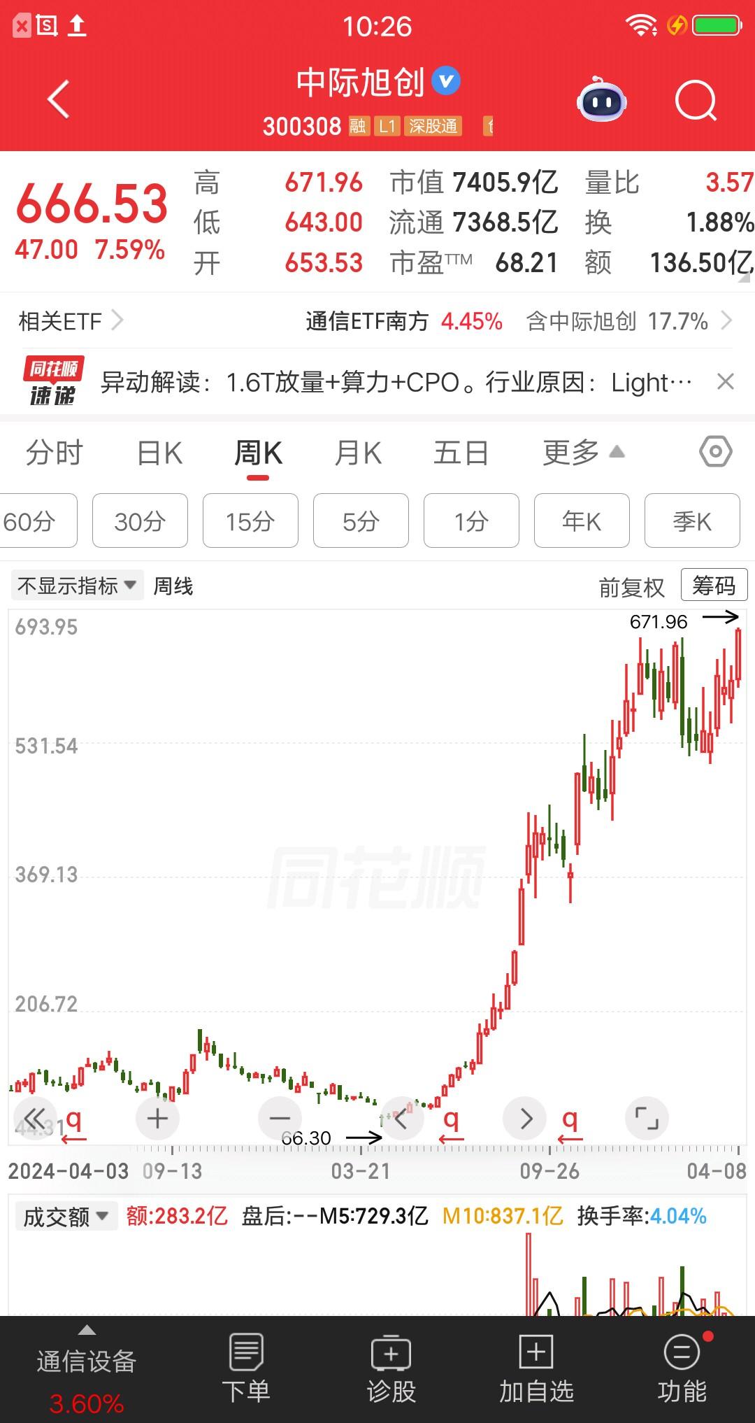 一位广东的股民,今天满仓了中际旭创,价格656元买了700股斥资46万块。他在看重要快讯的时候,看到中际旭创盘中股价创历史新高。发现这票的走势太牛了,一股想买的冲动油然而生。他又看了异动解读,公司核心产品是400G/800G/1.6T高速光模块,具备硅光和CPO技术储备。去年境外收入占比超九成,营收和利润双双暴增,是全球龙头企业。 于是他果断买进了,而且是一把梭哈。他晒图说“强者恒强就靠你翻身了”。有股友提醒他,中际旭创确实牛掰,但是股价太高了,当心追高风险呀。 他的回答也很扎心,低位的绩优小票,买了好几个拿了几个月了,天天要死不活的走势,一点盼头都没有。如果低位的票有钱赚,傻子才会冒险追高。 话糙理不糙呀!这就是当下市场现状,散户拿着低位的票持股待涨,可主力也知道散户的想法,所以宁愿高位抱团,也不去给散户抬轿子,只能保持耐心和信心继续等待。 希望这位广东的股友,能如愿大赚吧。