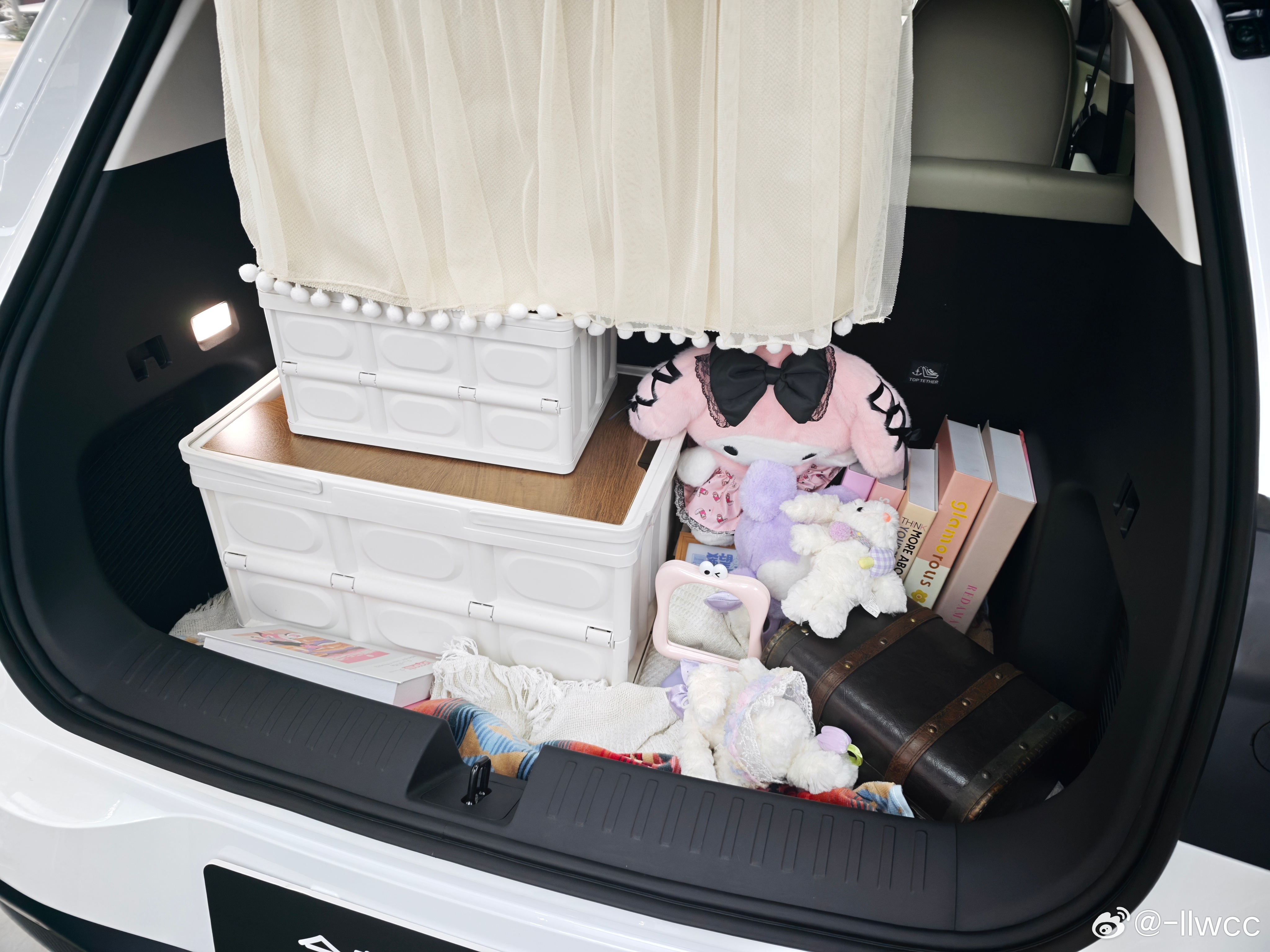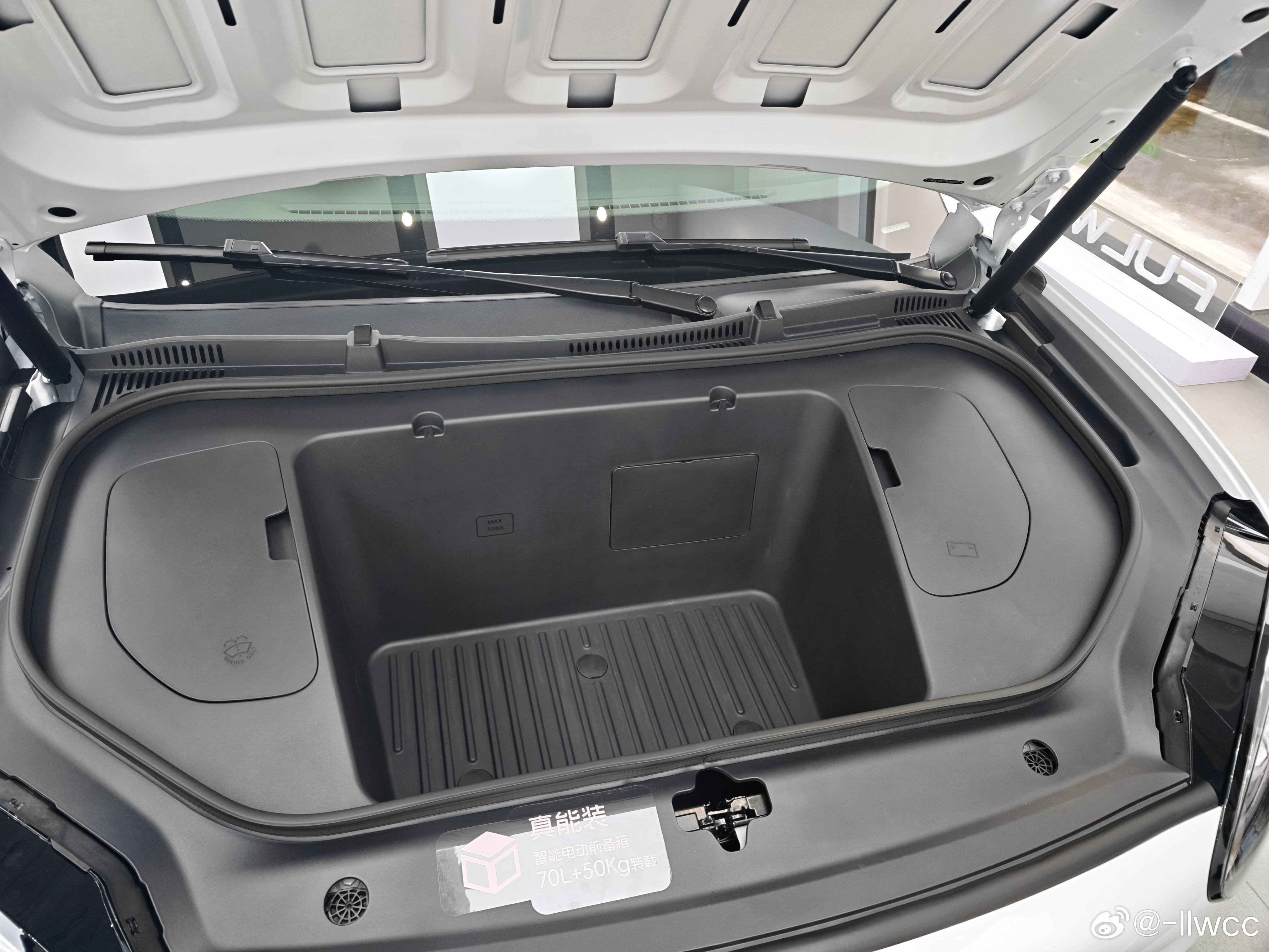 后备箱空间就很一般了,高度很不错但进深实在是不深,可以看出总布置时把绝大部分空间都分给了后座。好在,它有个尺寸不小(70寸)的、方方正正的、有排水口和挂钩的前备箱,配备了电动开关,足够好用实用,是非常有诚意的配置。吹毛求疵一下的话,就是那个实体开关按下去会嘎吱嘎吱响,不知道是不是和面板有一点干涉。