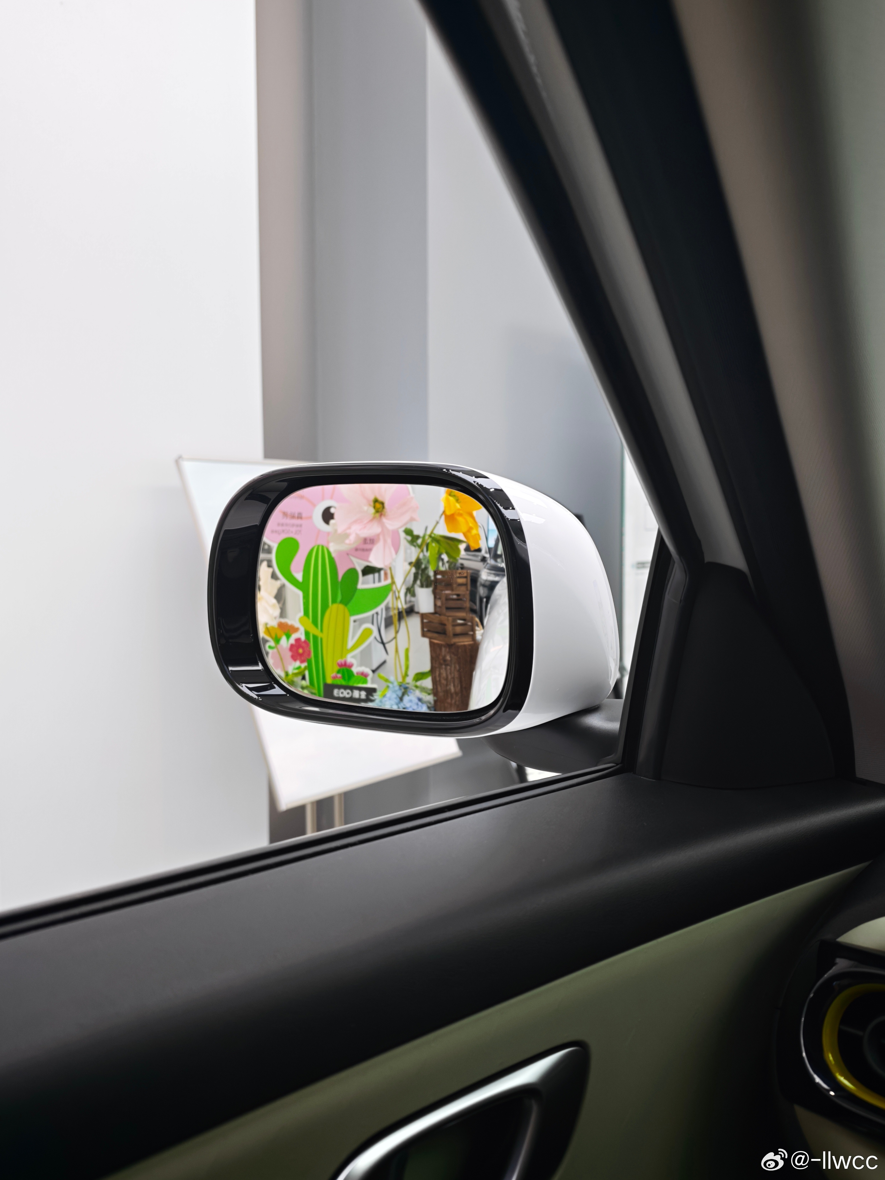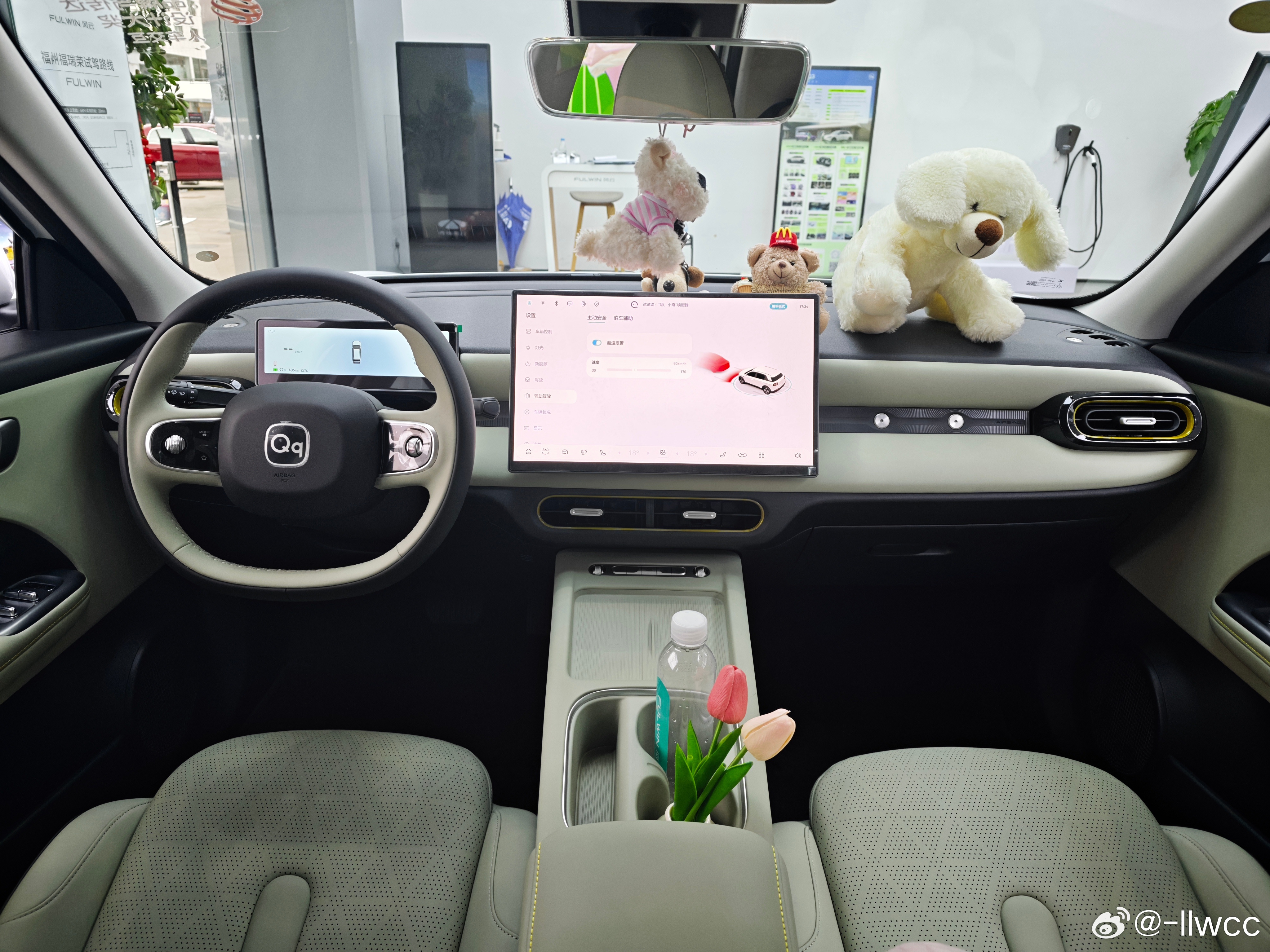从经销商在车里摆放的装饰品看,它最主要的客群应该还是女性。车内采用了绿色的配色,方向盘尺寸不大且很圆,手感不错,值得好评。方向盘按键很神奇,想操作时,你不一定要按那个按键标注的地方,直接按滚轮外侧,一样能按得动。屏幕流畅度非常优秀,丝般顺滑,8155车机在这车上的应用绝对算得上超纲了,动画也很活泼可爱,但图10和一些其他的UI细节未免有点眼熟。