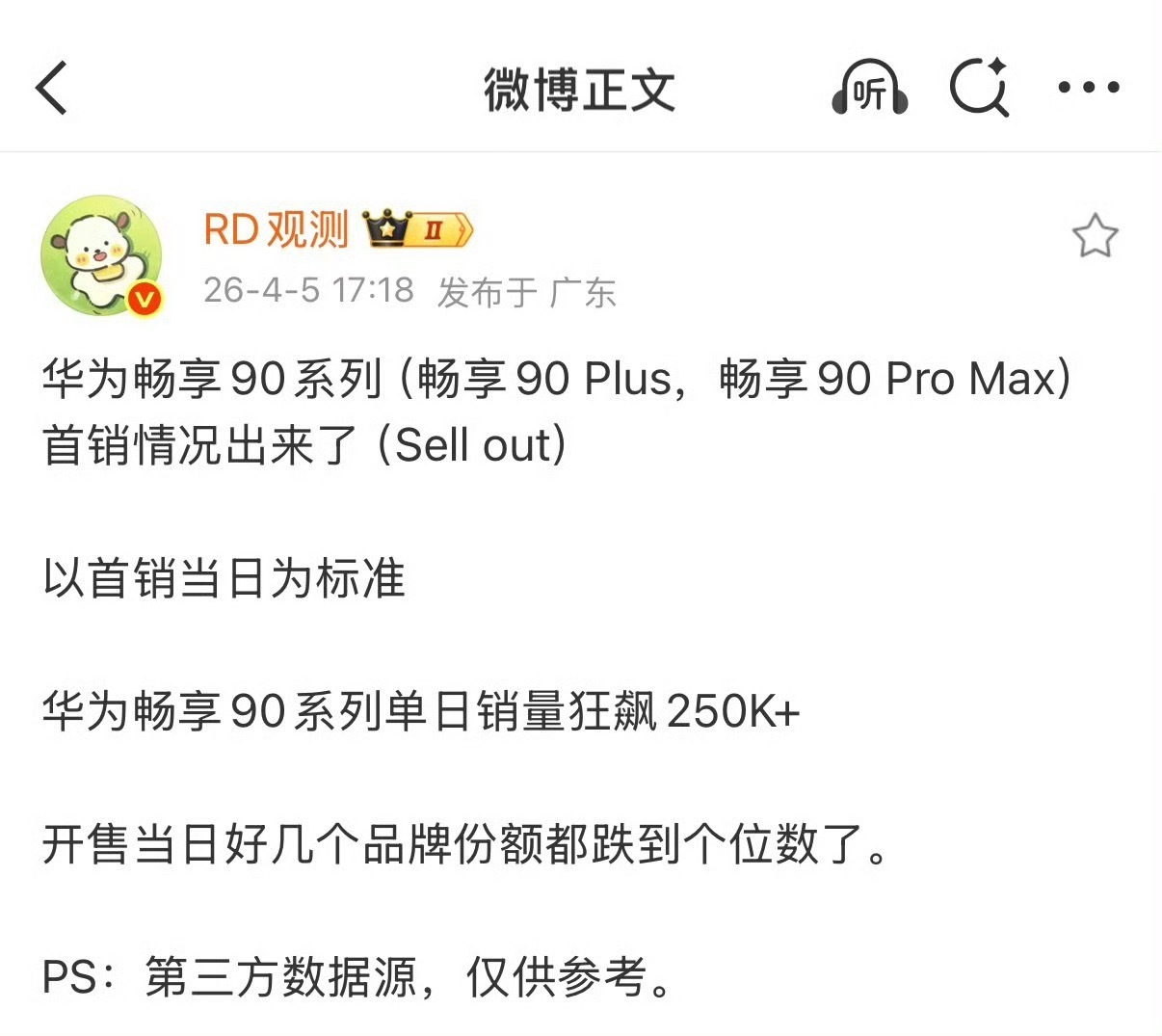 华为畅享90系列单日销量狂飙25万台这么逆天,日销25万台!